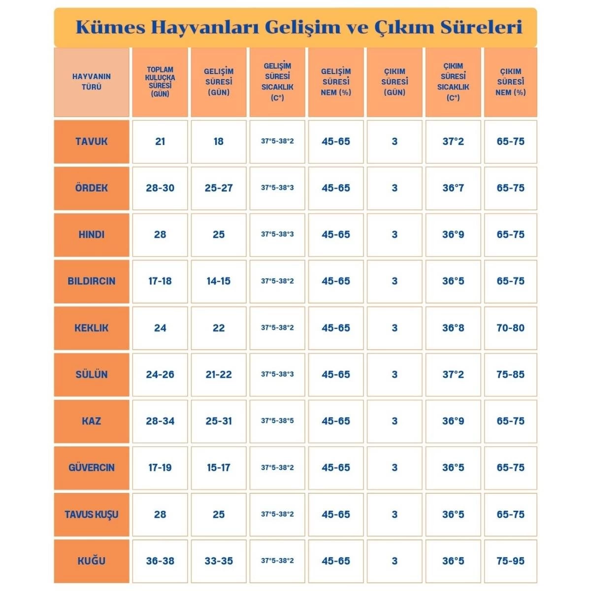 Kuluçka sürecinde doğru sıcaklık, nem ve çevirme işlemi hayati önem taşır. Bu model, tüm bu işlemleri sizin yerinize otomatik olarak yapar: