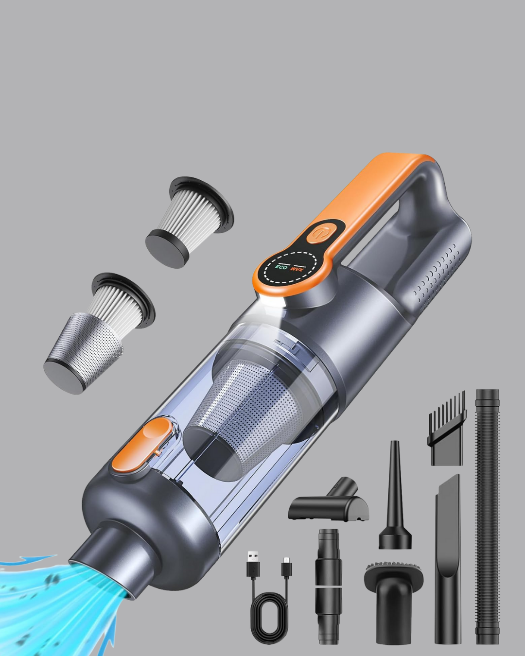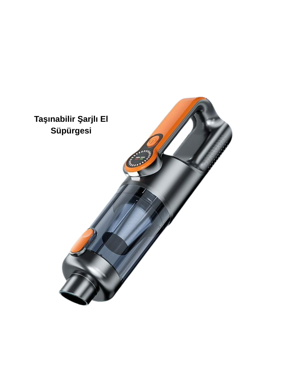 Güçlü motor yapısına sahip bu mini el süpürgesi, kuru ve sıvı kirleri saniyeler içinde temizleyerek etkili temizlik performansı sunar. Toz, saç, kırıntı, evcil hayvan tüyü ve dökülen sıvılar gibi birçok kir türünde yüksek verim sağlar. Set içerisinde bulunan numaratör hediyesi.USB Type-C hızlı şarj özelliği ile kısa sürede şarj olur ve 25–30 dakika boyunca kesintisiz çalışabilir. Kablosuz yapısı sayesinde dar alanlarda ve araç içinde kullanım kolaylığı sağlar.5 başlık aparatı ile donatılmış cihaz; dar uçlu başlıkla detay temizliği, fırçalı başlıkla hassas yüzey temizliği, geniş başlıkla genel yüzey temizliği, yuvarlak başlıkla köşe temizliği ve esnek hortumla zor ulaşılan yerlerde üstün performans sunar.Yıkanabilir toz haznesi hijyenik kullanım sağlar. Kompakt boyutu sayesinde çekmece, torpido veya çantalarda kolayca saklanabilir.