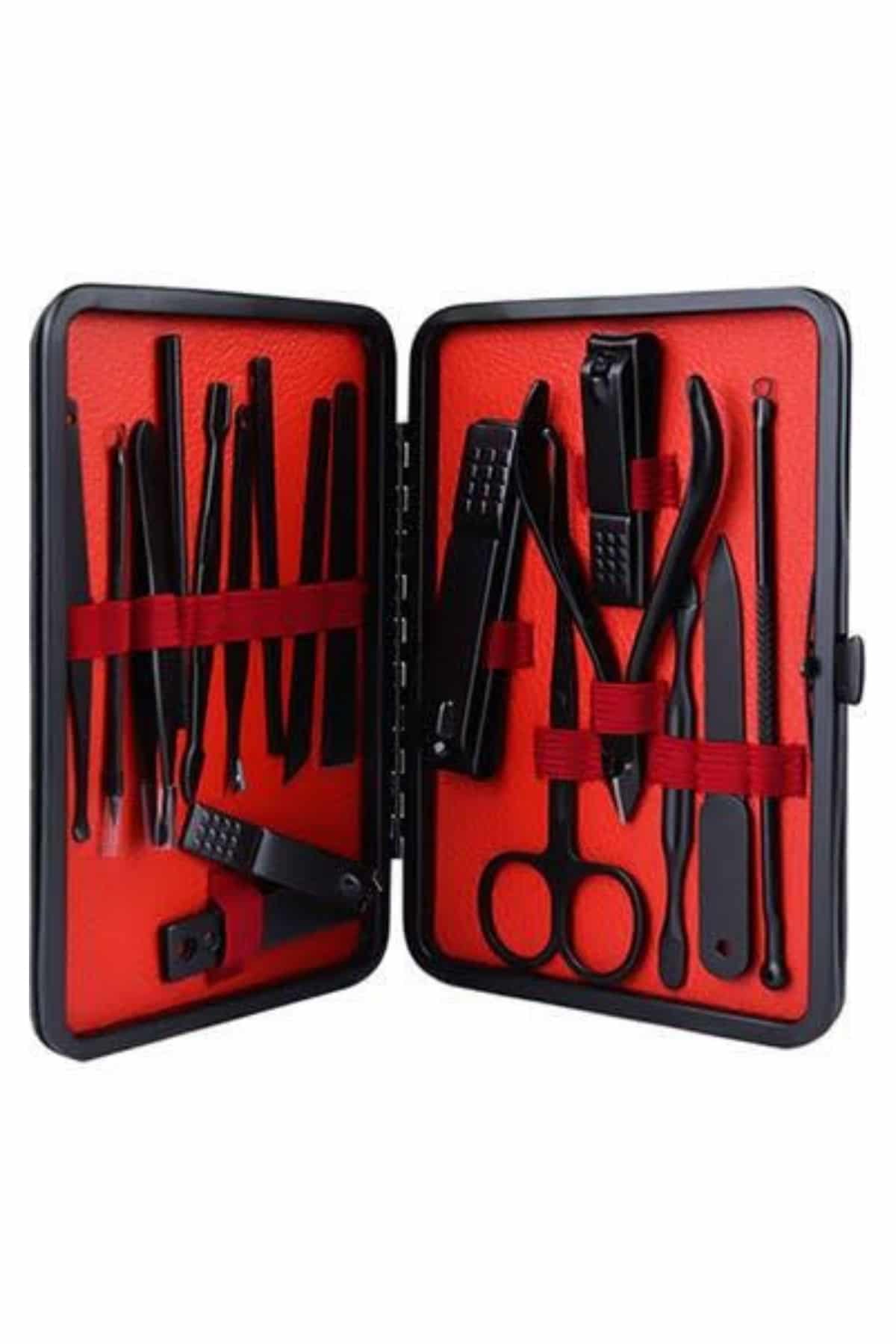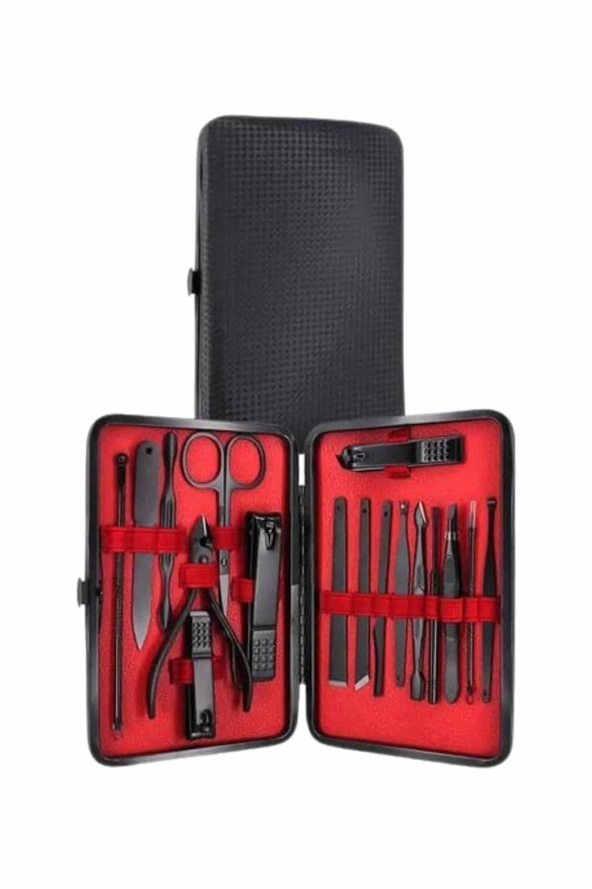 KESGİN MARKET® 17 parça manikür pedikür seti, hem el hem de ayak bakımı için ihtiyaç duyacağınız tüm malzemeleri içerir. Paslanmaz çelikten üretilmiş olan set, dayanıklılık ve uzun ömür sağlar, ayrıca güvenli sterilizasyon olanağı sunar. Yeni nesil siyah kaymaz parlatma teknolojisi ile keskinlik artırılmış olup, estetik ve kullanım kolaylığı sağlar.Paslanmaz Çelik ve Yüksek Kalite:Tüm ürün parçaları, %100 paslanmaz çelikten üretilmiştir. Bu malzeme, sağlamlık ve dayanıklılık sağlar, korozyona karşı direnç gösterir ve enfeksiyon riskini minimize eder. Keskin ve düzgün kesimler yaparak, tırnak bakımını profesyonel seviyeye taşır.Şık ve Taşınabilir Deri Çanta:Set, şık bir deri kaplama çanta ile birlikte gelir. Fermuarla kolayca açılıp kapanabilen bu çanta, tüm aletleri düzenli tutar ve taşımasını kolaylaştırır. Hafifliği sayesinde, seti her gün çantanızda taşıyabilir veya seyahatlerde yanınıza alabilirsiniz.Kapsamlı Bakım Seti:Bu set, el ve ayak bakımının her aşamasını kolaylaştıran birçok araca sahiptir. İçeriğinde büyük ve küçük tırnak makasları, sivri uçlu tırnak makası, çift uçlu komedon, törpü, et ittirici, pedikür bıçakları ve daha birçok kullanışlı alet bulunur. Bu araçlarla tırnak bakımınızı profesyonel seviyeye çıkarabilirsiniz.Sağlık ve Temizlik:Ürünler, kolayca temizlenebilir ve sterilize edilebilir özelliklere sahiptir. Bu da hijyen açısından büyük önem taşır, çünkü enfeksiyon riskini en aza indirir. Paslanmaz çelik yapısı, uzun süreli kullanımda bile dayanıklılığını korur.Paket İçeriği: 1 adet büyük tırnak makası 1 adet küçük tırnak makası 1 adet sivri uç tırnak makası 1 adet çift uçlu komedon 1 adet törpü 1 adet et ittirici 1 adet çift taraflı tırnak kaldırma aleti 1 adet makas 1 adet pedikür bıçağı 1 adet çarpraz pedikür bıçağı 1 adet kavisli pedikür bıçağı 1 adet V şeklinde et itme 1 adet itme çubuğu 1 adet tırnak temizleme 1 adet cımbız 1 adet iğneli komedon 1 adet kulak temizlemeÖzellikler: Yüksek kaliteli paslanmaz çelik malzeme Şık ve taşıması kolay deri çanta Kolay sterilizasyon ve temizlik Tırnak bakımında profesyonel sonuçlar Seyahat dostu, taşınabilir yapı