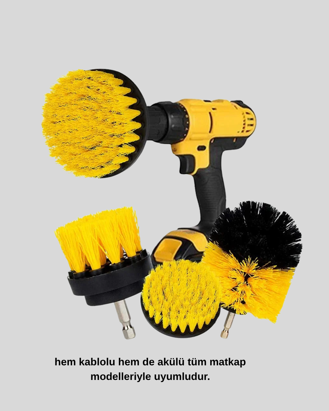 Evde, ofiste ya da araç bakımında derin temizlik için ideal olan 3’lü matkap fırça seti, güçlü performansı ve çok yönlülüğüyle öne çıkar.Matkabınıza kolayca takabileceğiniz bu fırçalar, yüksek devirle dönerken yüzeydeki inatçı kir ve lekeleri zahmetsizce söker.Üstelik, hem kablolu hem de şarjlı matkaplarla uyumludur.Üç farklı boyuttaki fırça başlığı, temizlikte esneklik sağlar:küçük başlık dar alanlar için, orta başlık yüzeyler için, geniş başlık ise zemin ve jant temizliği için idealdir.Dayanıklı ve sert kıl yapısı, yüzeyi çizmeden güçlü bir temizlik etkisi sunar.Banyo, mutfak, lavabo, tezgah, fayans araları, araç jantları, mermer, halı, kaplama yüzeyler ve hatta dış cephelerde bile kullanılabilir.Elle temizlikte ulaşılamayan noktalara kolayca ulaşır, güçlü döner etkisiyle kiri söker.Zaman tasarrufu sağlayan bu set, kısa sürede büyük alanların temizlenmesine olanak tanır.Ergonomik ve pratik yapısı, hem ev hanımları hem de profesyonel temizlik ekipleri için uygundur.Klasik fırçalama yöntemlerine göre çok daha etkili ve uzun ömürlü bir çözümdür.