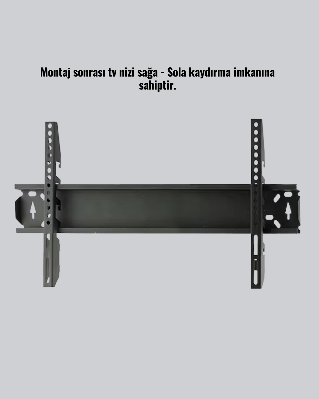 LCD–LED–Plasma TV Askı Aparatı, 32 ile 65 inç arasındaki tüm marka ve model televizyonlarla uyumlu olacak şekilde geliştirilmiş sağlam ve profesyonel bir montaj çözümüdür. Geniş ekran uyumluluğu sayesinde tek bir aparatla birçok farklı televizyonu güvenle duvara sabitleme olanağı sunar. Maksimum 75 kg taşıma kapasitesi, ürünün dayanıklılığını ve yük altında gösterdiği üstün performansı ortaya koyar. Büyük ekran TV’lerde bile tam güvenli kullanım sağlar.Aparatın gövdesi ekstra güçlendirilmiş çelik malzemeden üretilmiştir. Yüksek dayanım sunan bu özel üretim çelik yapı, televizyonun duvara sabitlenmesi sırasında maksimum stabilite sağlar. Çelik gövdede kullanılan malzemelerin tamamı Türkiye’de birinci sınıf kalite standartlarıyla üretilmiştir. Bu sayede hem sağlamlık hem uzun ömürlü kullanım garantilenir.Montaj sonrası televizyonu sağa–sola kaydırma imkânı bulunması, ekranın tam olarak merkezde konumlandırılmasını sağlar. Bu özellikle büyük ekran TV’lerde büyük avantaj sunar. Ayrıca üründe 3 kademeli yükseklik ayarı bulunmaktadır. Böylece televizyonu izleme mesafenize ve göz hizanıza en uygun şekilde ayarlayabilirsiniz.Üzerindeki anti-statik toz boya kaplama, aparatı paslanmaya ve çizilmelere karşı maksimum derecede dirençli hale getirir. Zamanla solma, aşınma, paslanma ya da yüzey bozulması gibi problemler oluşmaz. Hem iç hem dış mekânlarda uzun süreli kullanım için uygundur.Kurulum son derece pratik olup kutudan çıkan montaj kılavuzu ile adım adım yönlendirme yapılır. Montaj sırasında standarda uygun vida ve dübel setiyle kolay bir kurulum deneyimi sağlanır.Bu askı aparatı; salon, ofis, mağaza, restoran, otel ve toplantı salonlarında kullanılabilecek kadar güçlü, dayanıklı ve çok yönlüdür. Hem estetik hem işlevsel, hem de profesyonel bir montaj çözümü arayan kullanıcılar için en ideal tercihlerden biridir.