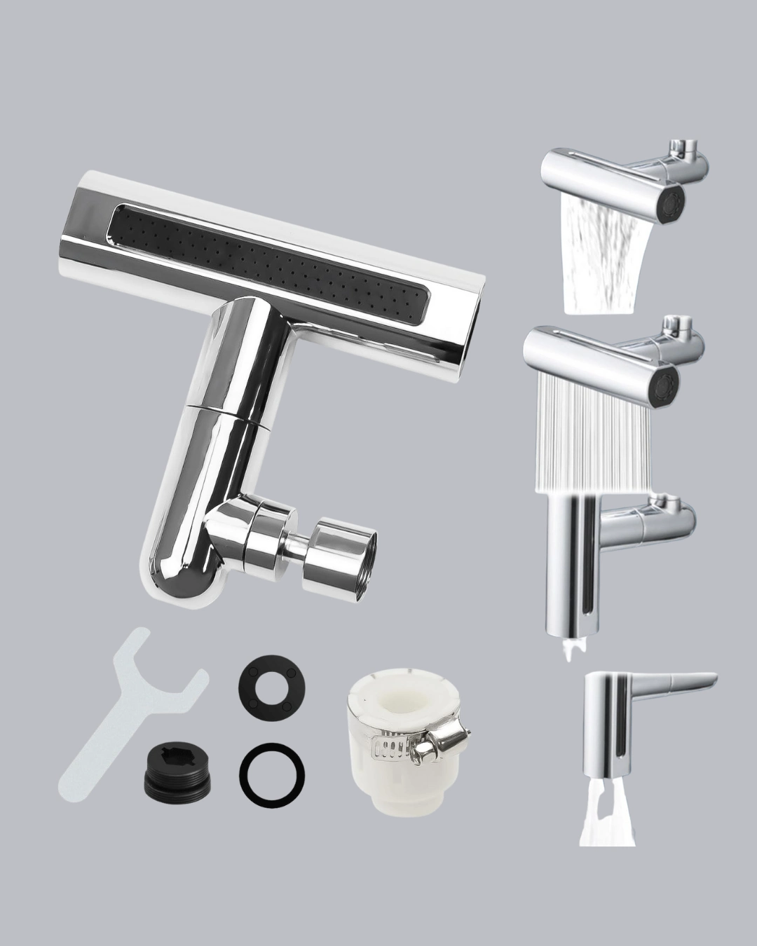 Mutfak veya banyonuzda su kullanımını kontrol altına alırken konforu artıran 4 Fonksiyonlu 360° Dönebilen Musluk Başlığı, hem modern tasarımı hem de işlevsel yapısıyla dikkat çeker.Yağmur, şelale, sprey ve kabarcık modu olmak üzere dört farklı su çıkış seçeneği, kullanım aınıza göre esnek bir deneyim sunar.İster bulaşık yıkarken güçlü bir su akışı, ister el yıkarken yumuşak bir akış tercih edin — her mod, suyu verimli kullanarak tasarruf sağlar.360° dönebilen ergonomik kolu, lavabonun her köşesine ulaşmanıza yardımcı olur.Bu sayede temizlik işlemleri hem kolaylaşır hem de zaman kazandırır.ABS + pirinç alaşımı malzemesi, uzun ömürlü kullanım ve yüksek dayanıklılık sunar.Korozyona, lekelere ve paslanmaya karşı dirençli yapısı sayesinde ilk günkü parlaklığını korur.Pratik montajı sayesinde ek bir araç gerekmeden takılabilir.Modern görünümüyle mutfak ve banyolara es bir dokunuş katarken, su tasarrufu sağlayarak çevre dostu bir kullanım sunar.Hem ekonomik hem de şık bir çözüm isteyenler için mükemmel seçim!
