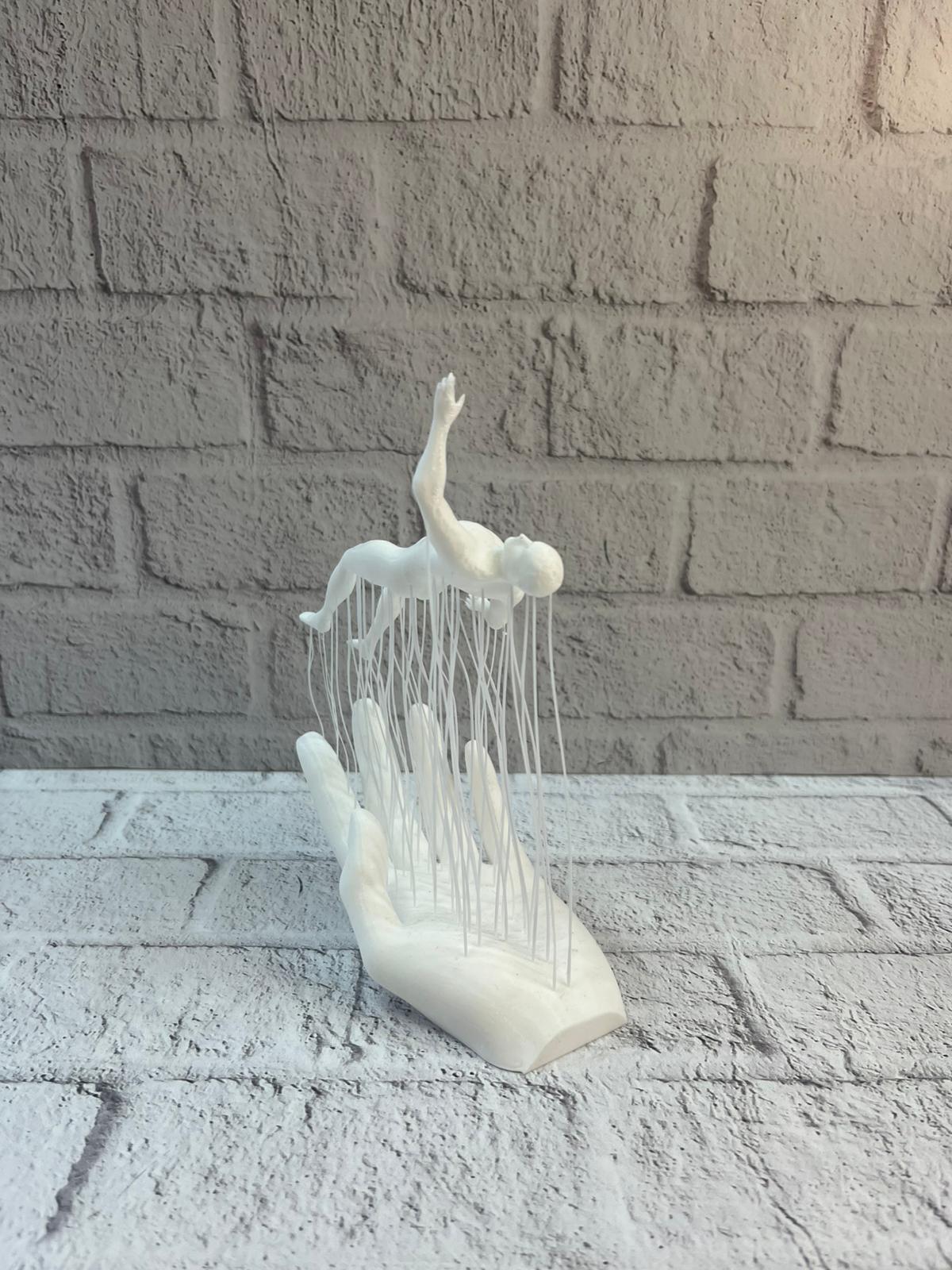 Sanat ve sadeliği bir araya getiren 3D El İnsan Figürü Beyaz, modern yaşam alanları için özel olarak tasarlanmış dekoratif bir objedir. El formu üzerinde konumlanan insan figürü; denge, özgürlük ve estetik uyumu simgeleyen soyut bir kompozisyon sunar. Minimal detayları sayesinde göz yormadan dikkat çeker.Beyaz rengi, ortama ferah ve aydınlık bir hava katarak dekorasyonun bütünlüğünü tamamlar. Salon, ofis, çalışma odası ve kitaplık gibi alanlarda raf, sehpa, masa veya konsol üzerinde tek başına güçlü bir dekoratif etki yaratır. Modern, minimal, İskandinav ve loft dekorasyon tarzlarıyla uyum sağlar.12×18 cm ölçüsü sayesinde az yer kaplar ancak bulunduğu ortamda sanatsal bir odak noktası oluşturur. Ev dekorasyonunda özgün ve anlamlı detaylara yer vermek isteyenler için şık ve zamansız bir seçenektir.