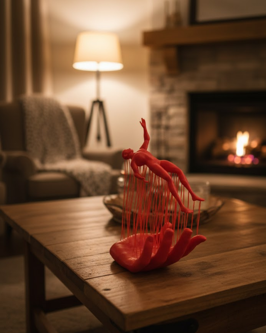 3D El Formlu İnsan Figürü Kırmızı, modern ve sanatsal tasarımıyla yaşam alanlarına güçlü bir karakter kazandırır. El ve insan figürünün birleştiği bu soyut kompozisyon, akışkan formu sayesinde bulunduğu ortamda dikkat çekici bir dekoratif etki oluşturur.Canlı kırmızı rengi, dekorasyona enerji ve dinamizm katarken modern ve minimal stillerle uyum sağlar. Salon, ofis, raf, konsol ve masa üstlerinde tek başına sergilendiğinde bile sanatsal bir odak noktası haline gelir.12x18 cm ölçüsü sayesinde yer kaplamadan etkileyici bir görünüm sunar. Modern dekorasyon stilini tamamlamak isteyenler için şık ve özgün bir seçimdir.