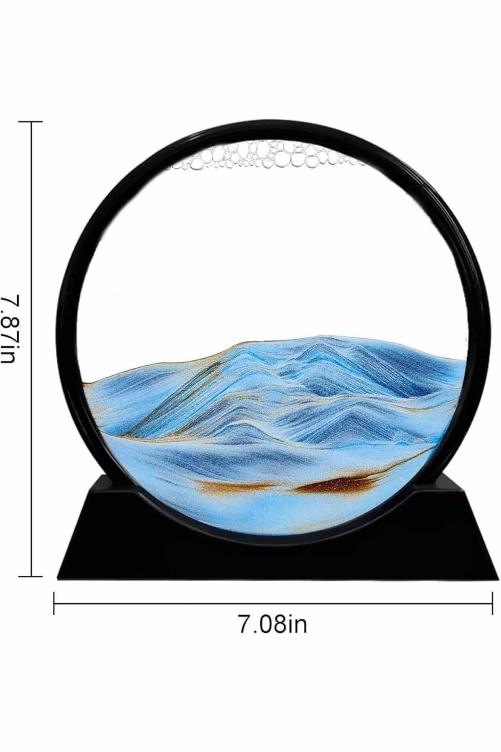 Mavi tonlarının huzur verici etkisini estetik bir sanat eseriyle birleştiren bu 3D LED ışıklı hareketli kum tablosu, ev ve ofis dekorasyonunda fark yaratmak isteyenler için mükemmel bir tercihtir. İçerisinde yer alan özel formüllü sıvı ve renkli kumların yer çekimiyle yavaşça aşağı doğru süzülmesiyle oluşan doğal desenler, her an değişen ve tekrar etmeyen bir görsel şölen sunar. İzledikçe rahatlatan bu hareket, hem zihinsel gevşeme sağlar hem de bulunduğu ortama modern bir sanat dokunuşu katar.Yedi inçlik ideal boyutuyla hem masa üstü kullanımına uygundur hem de dikkat çekici bir görsel sunar. LED aydınlatması, kumun akışını gece dahi keyifle izleyebilmenizi sağlarken, aynı zamanda hoş bir gece lambası işlevi de görür. Enerji verimli LED teknolojisi sayesinde uzun süreli kullanımlarda bile ekonomik bir tercih sunar.Dekoratif özelliği sayesinde yatak odası, salon, çalışma odası veya resepsiyon alanı gibi farklı mekanlarda rahatlıkla kullanılabilir. Ayrıca iş yeri hediyesi, yeni ev hediyesi ya da sevdiklerinize anlamlı ve estetik bir sürpriz olarak da değerlendirilebilir. İçeriğindeki kaliteli malzeme ve dayanıklı dış yapı, ürünün uzun ömürlü kullanımına olanak tanır.Sanatla teknolojinin uyumlu birleşimini yaşamak ve her bakışta farklı duygular hissettiren bir atmosfer yaratmak isteyenler için tasarlanmış bu ürün, hem görsel hem işlevsel açıdan beklentilerin ötesine geçer. Dinamik bir sanat eseri olarak öne çıkan bu LED ışıklı kum saati tablo, yaşam alanlarınıza estetik bir değer katmanın pratik ve etkileyici yoludur.Paket İçeriği:1 adet mavi renk 3D LED ışıklı hareketli kum sanatı gece lambası – dekoratif tablo.