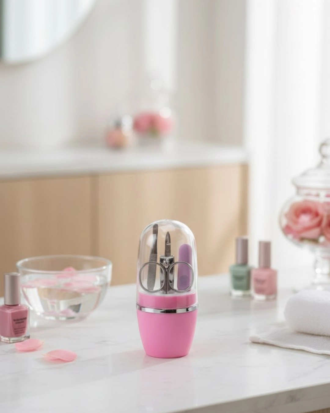 Şıklığı ve kullanışlılığı bir arada sunan Tırnak Bakım Manikür Pedikür Seti 4 Parça Pembe, sade tasarımıyla her yaş grubuna hitap eder. Kapsül formu sayesinde hem koruyucu hem de taşıması kolay bir yapı sunar.Set içeriğinde bulunan tırnak makası, manikür pedikür makası, cımbız ve törpü; günlük bakım ihtiyaçlarını eksiksiz şekilde karşılar. Metal yüzeyler sağlam yapısıyla dikkat çekerken, pembe detaylar ürüne es bir hava katar.Hediye alternatifi olarak da tercih edilebilecek bu ürün, kişisel bakımına önem verenler için ideal bir seçenektir. Düzenli, pratik ve şık bir manikür pedikür seti arayanlar için doğru bir tercihtir.