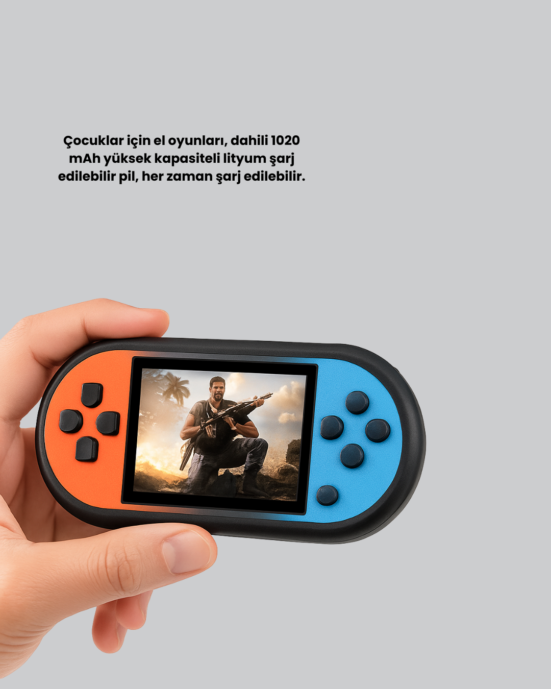 Bu 520 oyunlu retro el konsolu, hem eğlence hem de nostalji arayan kullanıcılar için benzersiz bir deneyim sunar. Cihaz, yıllar önce popüler olan onlarca oyunu modern bir kullanım formatıyla bir araya getirir. HD LCD ekran, oyunların grafiğini net bir şekilde gösterir ve yüksek parlaklığı sayesinde gün ışığında bile rahat bir görüş sağlar. Konsolun içerisinde yüklü gelen oyunların çeşitliliği oldukça fazladır; macera, spor, yarış, platform ve strateji kategorilerinde birçok oyun barındırır.Konsol, AV kablosu ile televizyona bağlanarak büyük ekran eğlencesi de sunar. Oyuncular, tek başına oynarken daha keyifli bir deneyim yaşarken, aile ve arkadaş ortamında çok daha interaktif bir eğlenceye dönüşür. USB şarj kablosuyla hızlı ve kolay şarj olabilen cihaz, uzun süreli batarya performansı sayesinde kesintisiz oyun deneyimi sağlar. Hafif ve ergonomik yapısı sayesinde özellikle çocuklar için güvenli ve kontrolü kolaydır. Yetişkinler içinse geçmişte kalan güzel hatıraları geri getiren keyifli bir teknolojik oyuncaktır.Konsolun tuş yapısı dayanıklı olup, uzun süreli kullanımlarda bozulma yaşamaz. Kavranabilir ergonomik tasarımı, uzun süren oturumlarda el ağrısı yapmadan konfor sağlar. Taşınabilir yapısı sayesinde evde, okulda, işte, parkta veya seyahatte her yerde kullanılabilir. 520 oyunlu bu el konsolu, çocuklar için eğitici ve motor becerilerini geliştiren oyunlarla doludur. Yetişkinler için ise stres atıcı, nostaljiyi canlandırıcı ve gün içinde eğlenceli bir mola sağlayan bir üründür.