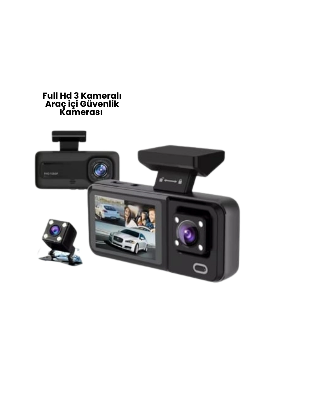 Bu 3’lü araç kamerası seti, sürüş esnasında ve park halindeyken maksimum güvenlik sağlamak isteyen araç sahipleri için geliştirilmiştir. Ön kamera Full HD 1080p çözünürlükte yolun tamamını net şekilde kaydederken, arka kamera geri manevra ve park anlarında arka görüşü güvence altına alır. İç kamera ise araç içini detaylı şekilde izleyerek özellikle ticari araç kullanıcıları için ek güvenlik sunar.Wi-Fi bağlantı özelliği sayesinde kamera tüm fonksiyonları telefon üzerinden kolayca yönetilebilir. Uygulama aracılığıyla canlı görüntü izlenebilir, kayıtlar telefona aktarılabilir ve ayarlar hızlıca değiştirilebilir. IR destekli gece görüş teknolojisi, düşük ışık koşullarında bile net ve aydınlık görüntüler elde edilmesini sağlar.Döngüsel kayıt özelliği, hafıza dolduğunda eski kayıtların otomatik olarak silinmesini sağlar. G-Sensor, ani darbe veya çarpışma algıladığında ilgili kaydı kilitleyerek üzerine yazılmasını engeller. Hareket algılama modu, araç park halindeyken çevredeki hareketleri tespit ederek otomatik kayıt başlatır.2.7 inç LCD ekran üzerinden görüntüler anında kontrol edilebilir. TYPE-C güç girişi stabil ve hızlı enerji aktarımı sağlar.Not: Hafıza kartı dahil değildir. Cihaz harici hafıza kartı ile çalışır.