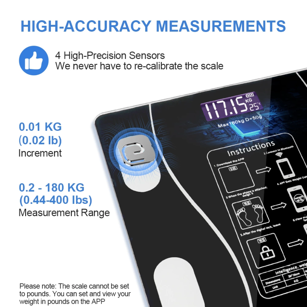 Bu akıllı vücut yağ ölçer, sağlık ve fitness hedeflerinize ulaşmanıza yardımcı olmak için kapsamlı bir veri sunar ve günlük yaşamınıza entegre edilebilir.