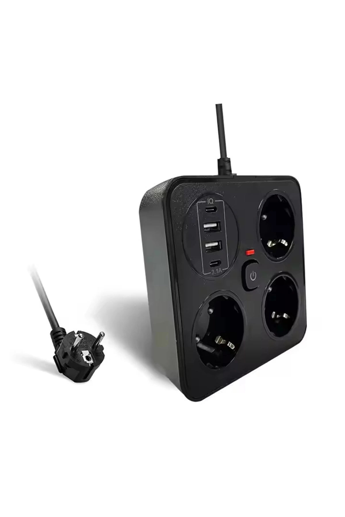 Akım Korumalı Anahtarlı Priz - 3X Priz - 2X Usb - 2X Type-C - 2 mt Kablo Hızlı Şarj Özellikli Siyah