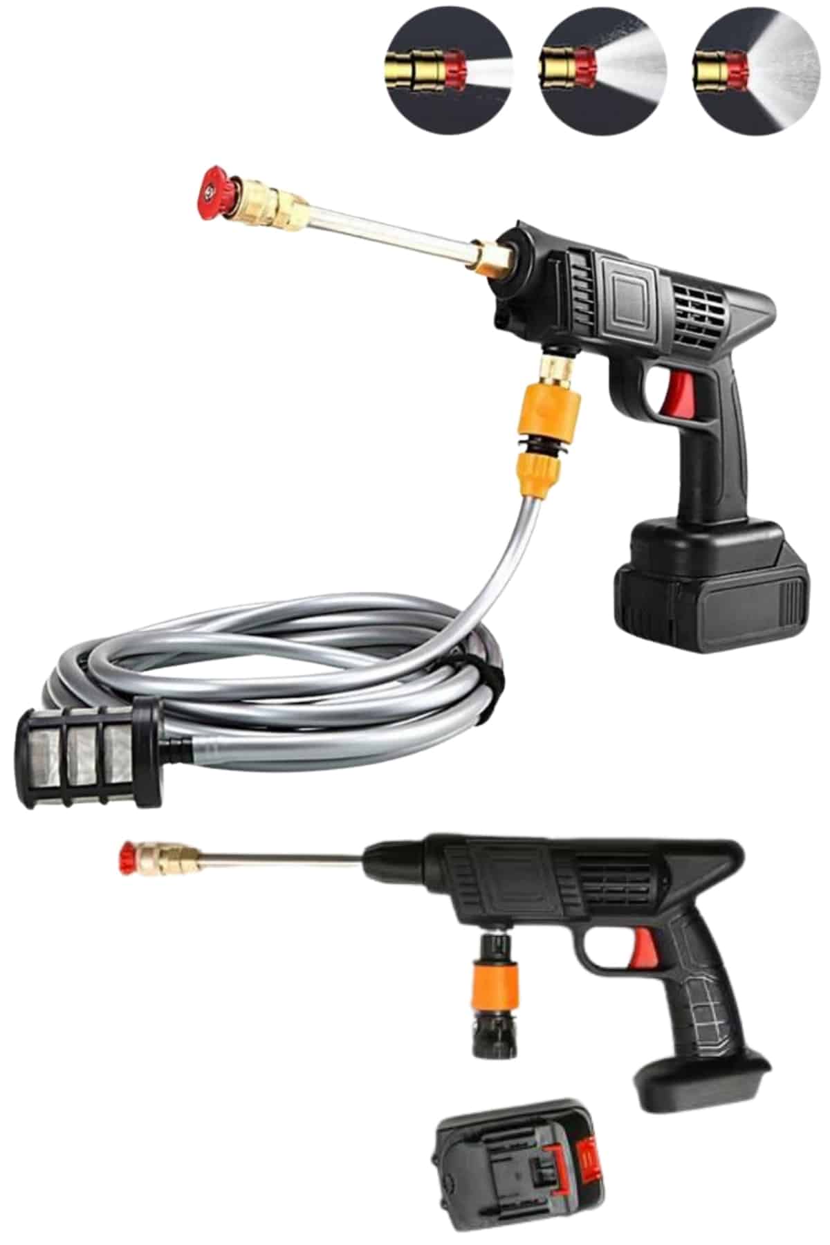 KESGİN MARKET® Taşınabilir Akülü Yıkama Makinesi - Güçlü Temizlik, Kolay KullanımGüçlü performansı ve taşınabilirliğiyle dikkat çeken Akülü Yıkama Makinesi, evde ve dış mekanlarda temizlik ihtiyaçlarınızı hızlı ve verimli bir şekilde karşılamak için ideal bir çözümdür. 21V XR Li-Ion bataryası, kömürsüz motoru ve uzun süreli çalışma kapasitesi ile mükemmel temizlik sonuçları sunar. Bu cihaz, araba yıkamadan bahçe temizliğine kadar çeşitli temizlik işlemlerini kolayca gerçekleştirmenizi sağlar.Etkili Temizlik ve Güçlü Performans1500mAh çift aküsü ve 5 pilli dahili bataryası ile uzun süreli kullanım sağlar. 1.7 Mpa'lık yüksek tepe basıncı, en inatçı kirleri bile rahatlıkla temizlemenize olanak tanır. 3.2 L/dak su çıkışı sayesinde, her kullanımda etkili ve hızlı temizlik sağlarsınız. Metal pompa silindiri, uzun ömürlü ve dayanıklı bir kullanım için tasarlanmıştır, böylece cihaz uzun süre performans kaybı yaşamaz.Hızlı Şarj ve Kolay Kullanım60 dakikalık hızlı şarj süresi ile her zaman kullanıma hazırdır. 2 kg'lık hafif tasarımı, taşımasını ve yönlendirilmesini son derece kolaylaştırır. Ergonomik yapısı sayesinde her yaştan kullanıcı tarafından rahatlıkla kullanılabilir. Araba yıkama, bisiklet temizliği veya evde bahçe sulama gibi farklı kullanım alanlarında da size büyük kolaylık sağlar.Dayanıklı ve Uzun Süreli KullanımÜrün, 2 yıl garanti süresiyle birlikte gelir, böylece uzun vadeli kullanımda güvenli bir deneyim sunar. Hafif yapısı, güçlü performansı ve yüksek dayanıklılığı ile her türlü temizlik işinizi zahmetsizce tamamlamanızı sağlar. Hem evde hem de dış mekanlarda kullanım için mükemmel bir tercihtir.