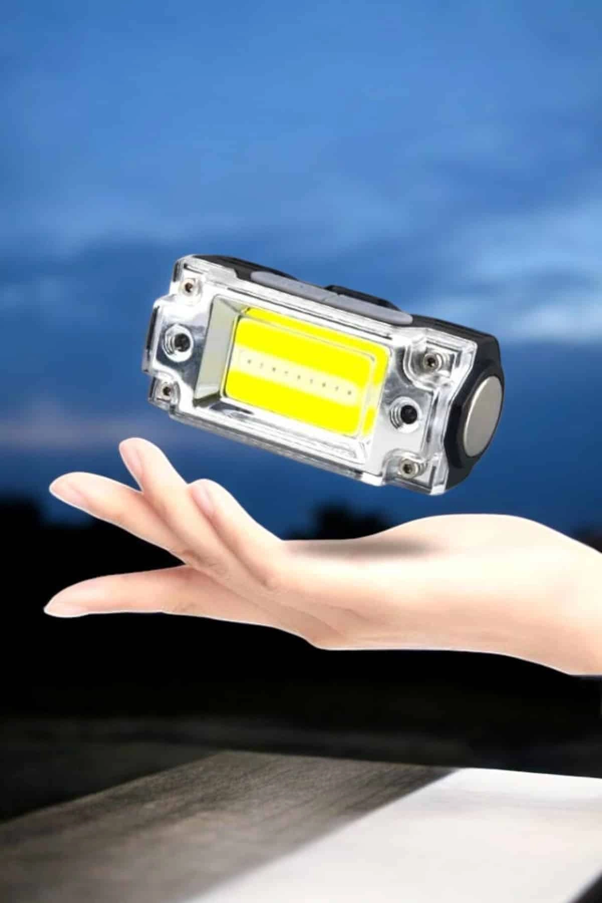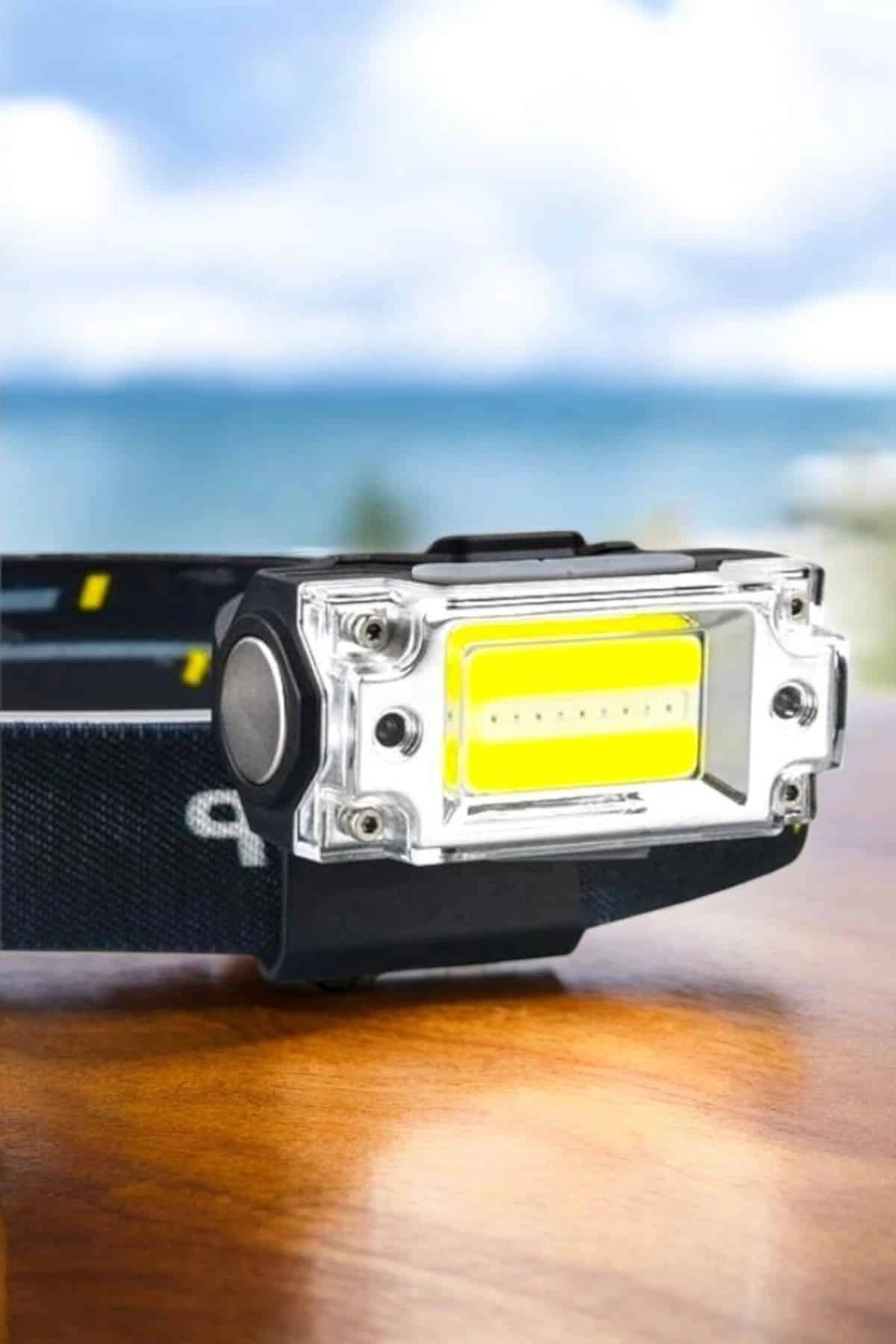 Beyaz Led Işık Sensörlü Kafa Lambası Lityum Batarya Led El Fenerli Şarjlı