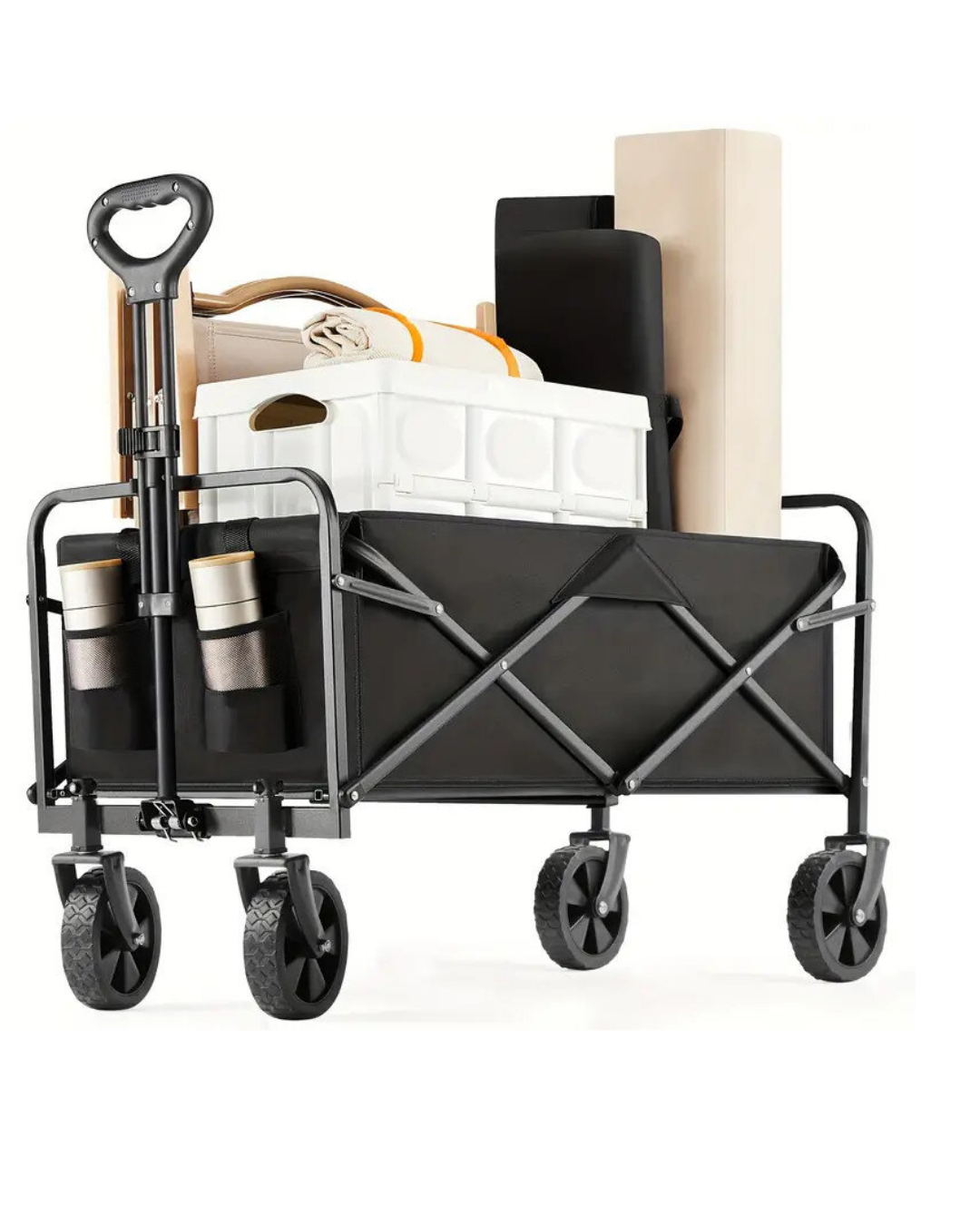 Büyük Kapasiteli Katlanır Kamp Arabası, eşyaların tek seferde ve zahmetsiz şekilde taşınmasını sağlamak amacıyla geliştirilmiştir. Kamp, plaj, bahçe ve alışveriş gibi farklı alanlarda kullanıma uygun olan bu vagon, günlük yaşamı kolaylaştıran çok yönlü bir yardımcıdır.Katlanabilir tasarımı, ürünü taşınabilir ve depolanabilir hale getirir. Kullanım sonrasında hızlıca kapatılarak kompakt boyuta ulaşır. Araç bagajında veya evde fazla yer kaplamadan saklanabilir. Kurulum gerektirmemesi sayesinde pratik bir kullanım sunar.Geniş iç alanı ve 74,8 kg taşıma kapasitesi, büyük ve ağır eşyalar için idealdir. Kamp malzemeleri, soğutucu kutular veya bahçe ekipmanları rahatlıkla taşınabilir. Yan cepler küçük eşyaların düzenli biçimde yerleştirilmesine yardımcı olur.360° dönebilen ön tekerlekler, her yönde rahat hareket imkânı tanır. Farklı zemin koşullarında dengeli sürüş sağlar. Ayarlanabilir ve kilitlenebilir kulp, kullanım sırasında kontrol kolaylığı sunar.Dayanıklı çelik iskeleti ve 600D Oxford kumaşı sayesinde uzun süreli kullanım için uygundur. Kumaş çıkarılabilir ve kolay temizlenebilir yapıdadır.Büyük Kapasiteli Katlanır Kamp Arabası, taşıma işlerini daha pratik ve konforlu hale getirmek isteyen kullanıcılar için ideal bir çözümdür.