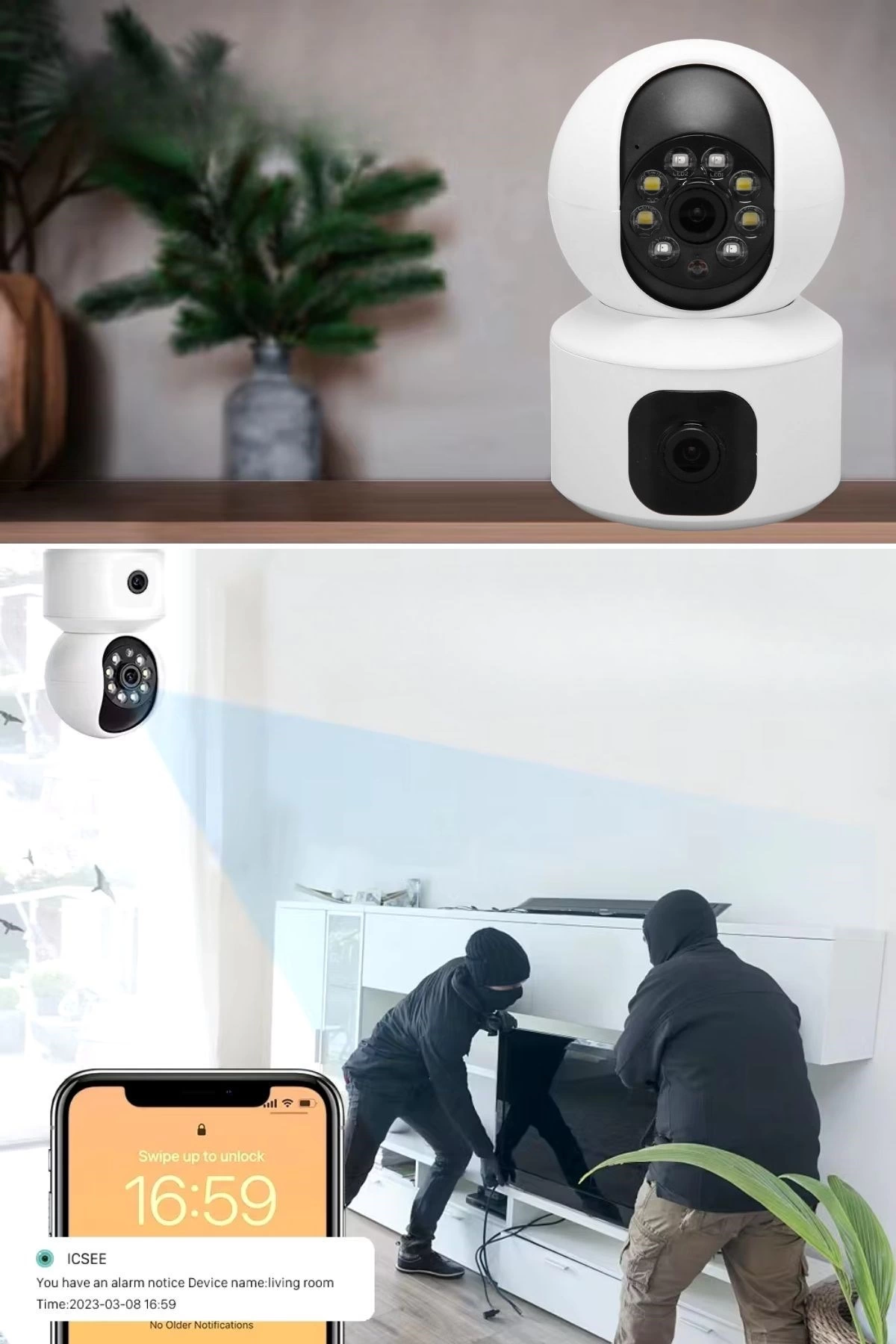 Ev ve ofis güvenliğiniz için ideal olan Çift Kameralı WiFi Bağlantılı Gece Görüşlü Güvenlik Kamerası, akıllı cihazlarınızdan kolayca erişebileceğiniz, geniş açılı ve yüksek kaliteli bir izleme deneyimi sunar.