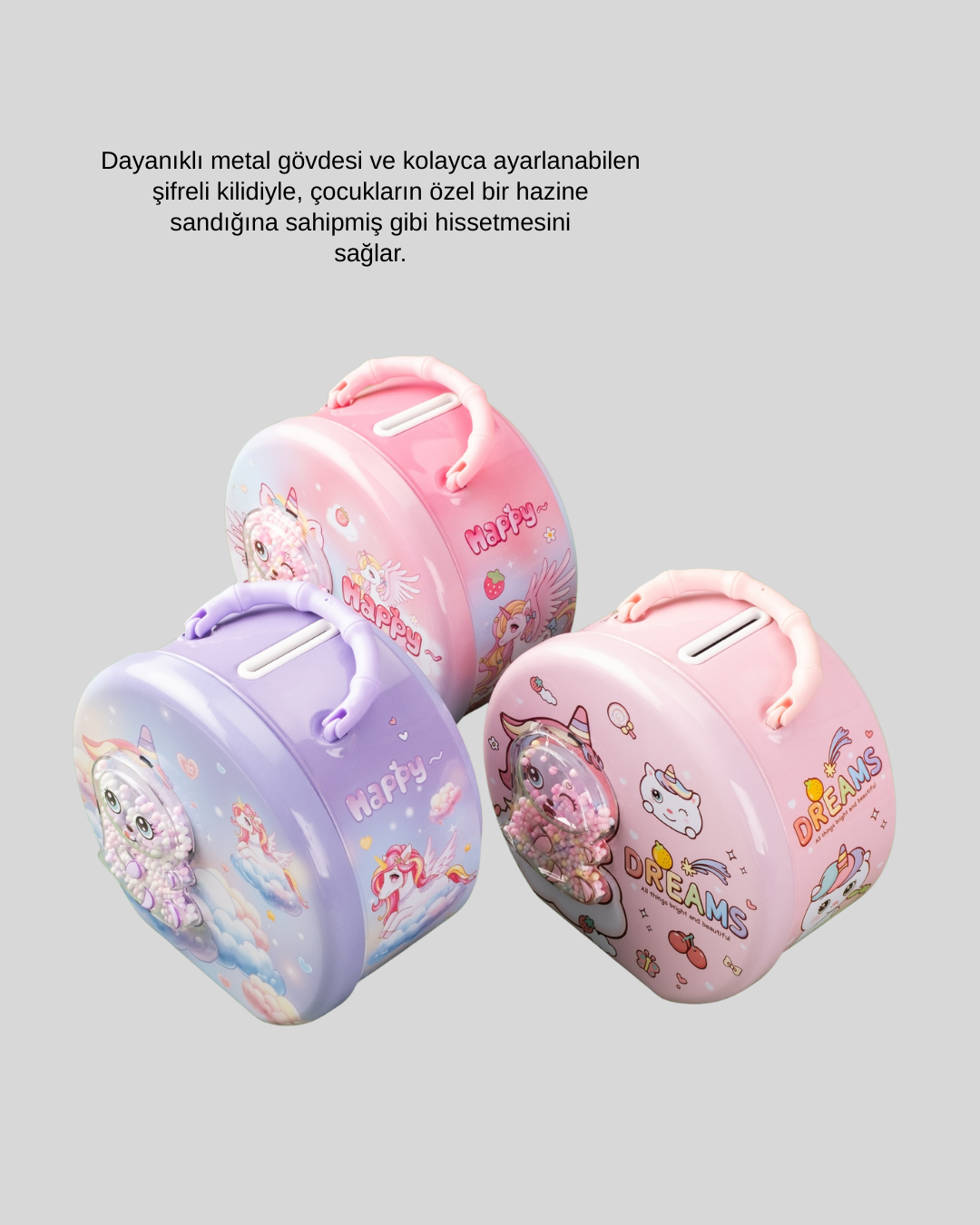 Çocuklara özel tasarlanan bu metal para kasası, güvenlik ve eğlenceyi bir arada sunar. Şifreli kilit sistemi sayesinde çocuklar eşyalarını güvenle saklayabilir ve gizlilik duygusunu erken yaşta öğrenir.Dayanıklı metal gövdesi, plastik ürünlere kıyasla daha sağlam bir yapı sunar. Ayarlanabilir şifre sistemi, anahtar gerektirmeden pratik kullanım sağlar.Çocuk odalarına modern ve sevimli bir hava katan bu ürün, tasarruf bilinci kazandıran eğitici bir araç olarak öne çıkar.