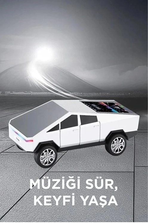 Araba Tasarımlı Bluetooth Hoparlör 15W Güçlü Ses RGB LED /TWS/USB kablosuz hoparlör ile müziğinizi yollara taşıyın Modern CyberTruck esintili tasarımıyla dikkat çeken bu hoparlör, sadece bir ses cihazı değil, aynı zamanda şık bir aksesuar.