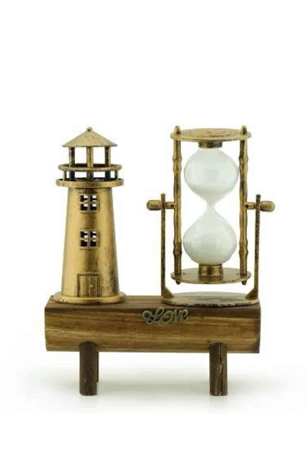 Modern ve Es TasarımBu özel kum saati, klasik kum saatlerinin modern bir yorumu olarak tasarlanmıştır. Deniz feneri figürüyle birleşen zarif formu, her tarza uyum sağlayabilecek bir dekorasyon öğesi olmasını sağlıyor. Cam bölmeler içerisindeki ince kum tanecikleri, üst hazneden alt hazneye süzülerek akarken büyüleyici bir görsel şölen sunuyor. Hareketli yapısıyla zamanı ölçmenin geleneksel bir yolunu hatırlatırken, aynı zamanda ortamın atmosferine sofistike bir dokunuş katıyor. Ofislerde masa üstünde veya çalışma odalarında huzurlu bir atmosfer yaratmak için ideal bir seçimdir.