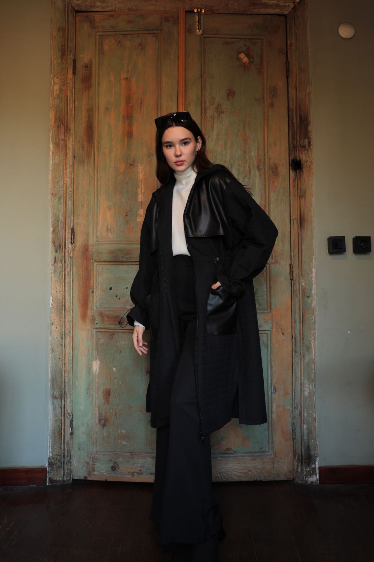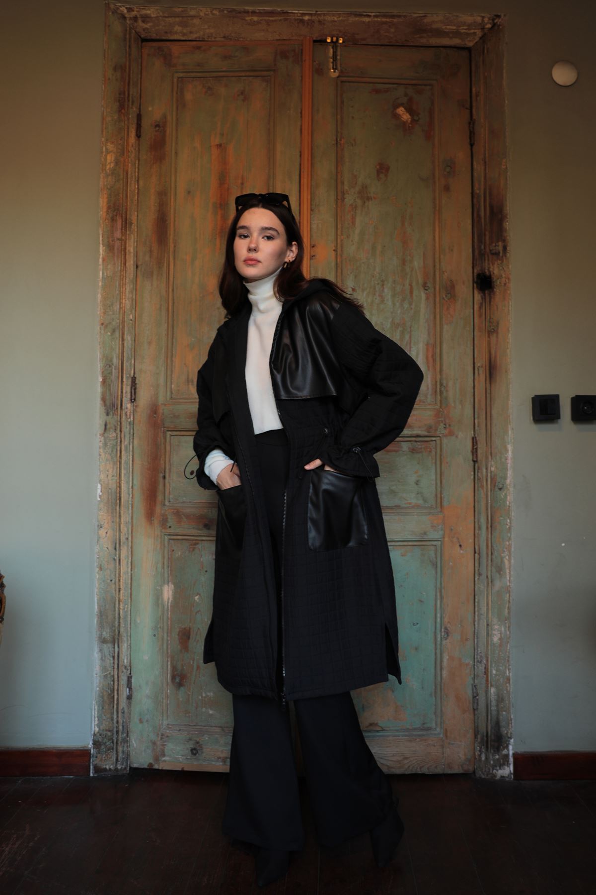 Şehir stiline iddialı bir dokunuş katmak isteyen kadınlar için tasarlanan Siyah Deri Garni Detay Jakar Kadın Trençkot, lüks dokusu ve modern çizgileriyle fark yaratır.