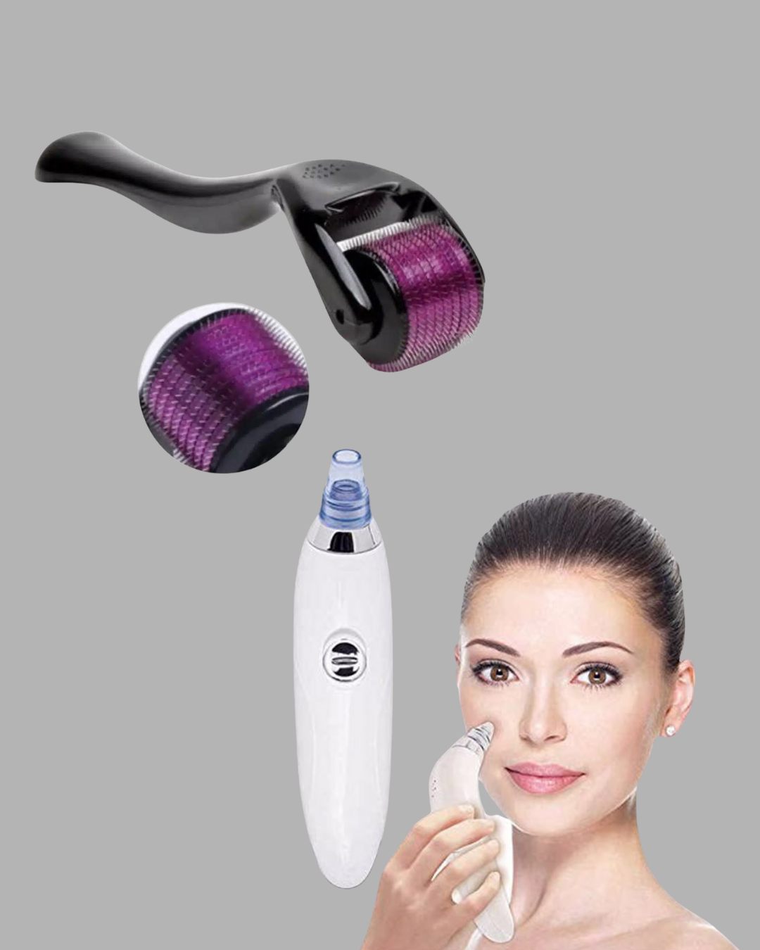 Bu 2’li cilt bakım seti, cildini evde profesyonel seviyede bakım yapmak isteyenler için özel olarak bir araya getirilmiştir. Dermaroller, 1 mm kalınlığında titanyum iğneleri ve 540 adet iğne yapısı sayesinde cilt yüzeyini uyararak yenilenme sürecini destekler. Akne izleri, cilt lekeleri ve deri çatlaklarının görünümünü azaltmaya yardımcı olur. Silindir tasarımı sayesinde kolay uygulanır, acısız ve yan etkisi bulunmayan bir bakım yöntemidir.Vakumlu siyah nokta temizleme cihazı ise güçlü emiş teknolojisi ile siyah noktaları, yağ fazlasını ve kirleri nazikçe temizler. Beş farklı hız kademesi sayesinde her cilt tipine uygun kullanım sunar. Düzenli kullanımda cilt daha pürüzsüz, temiz ve canlı bir görünüme kavuşur.