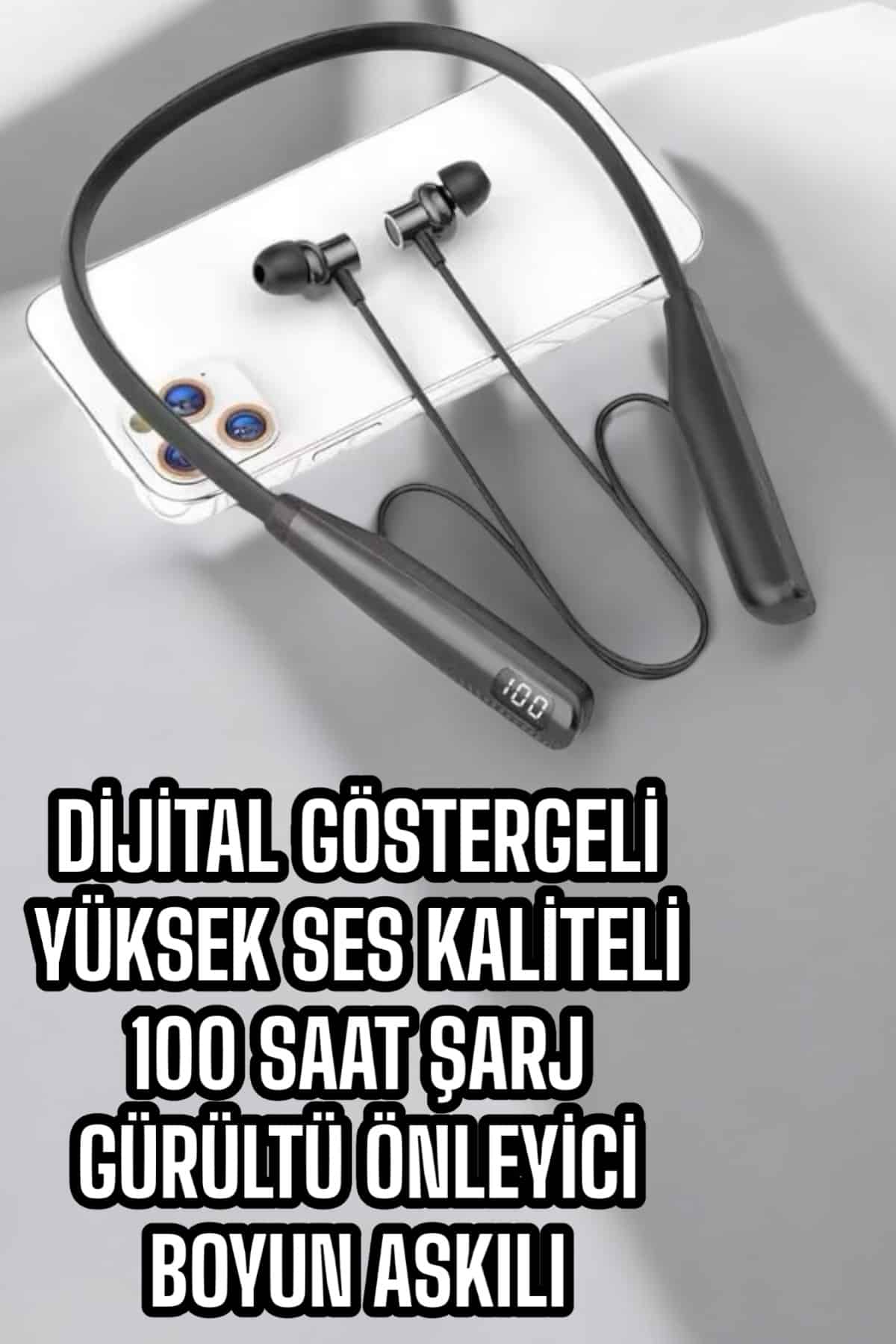 KESGİN MARKET ® Dijital Göstergeli Kulak İçi Kablosuz Bluetooth Kulaklık Boyun Bantlı