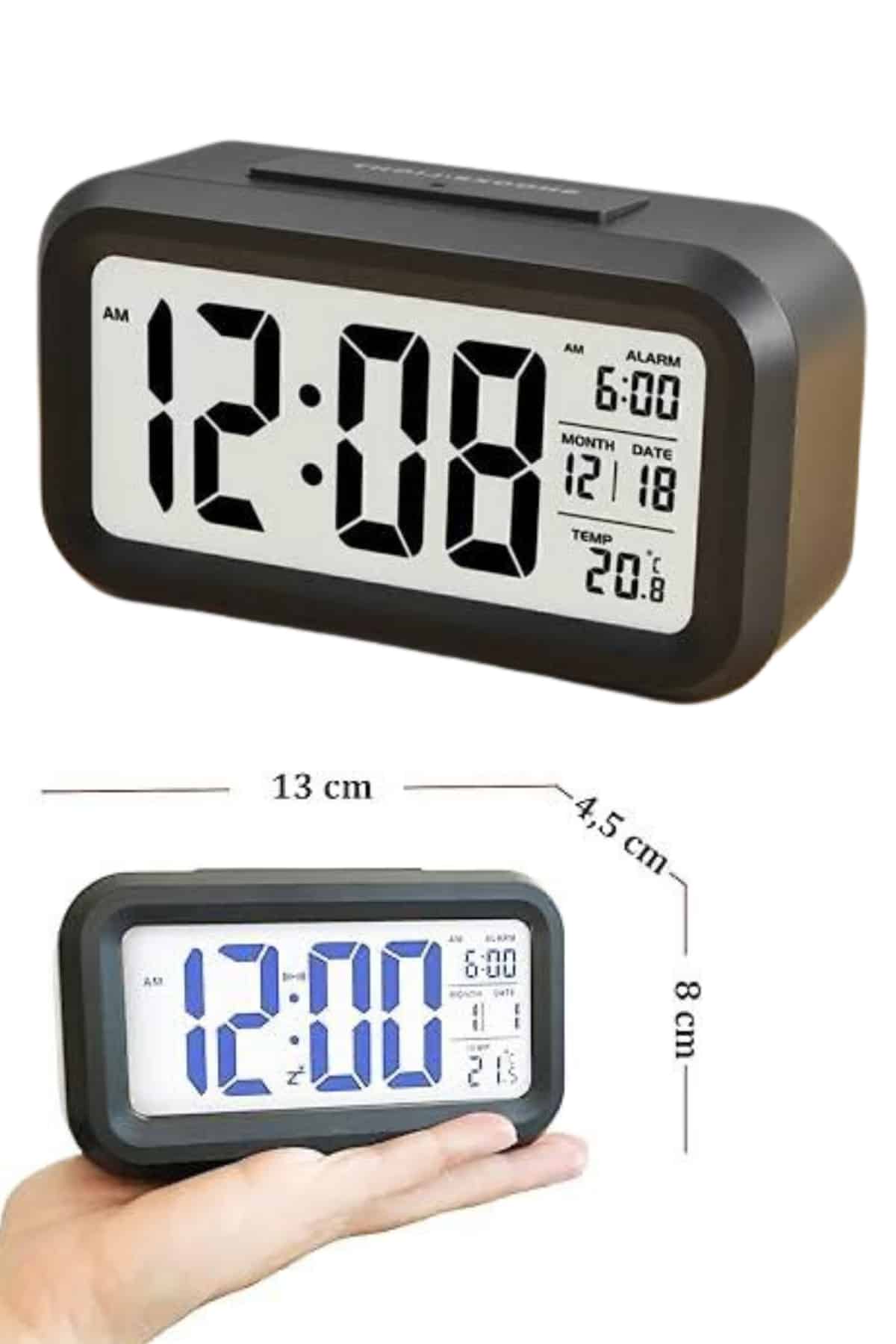 KESGİN MARKET® Pratik kullanımı ve şık tasarımıyla öne çıkan bu dijital masa saati, her anı planlamanıza yardımcı olmak için ideal bir çözümdür. Büyük LCD ekranı sayesinde saati, tarihi ve sıcaklık bilgilerini rahatlıkla takip edebilirsiniz. Kararmış ortamlarda dahi ekranın otomatik olarak aydınlanması, saatin her koşulda net bir şekilde görünmesini sağlar. 6 saniye sonra kendiliğinden sönen ışık özelliği, gözlerinizi rahatsız etmeden enerji tasarrufu sağlar.Alarm fonksiyonu sayesinde sabahları rahatça uyanabilir, güne dinç başlayabilirsiniz. Ayrıca, tarih ve ortam sıcaklığı bilgilerini aynı anda görüntüleyebilmeniz, günlük planlamanızı kolaylaştırır. Kompakt ve şık tasarımı, ofis veya ev ortamında rahatlıkla kullanılmasını sağlar.Ürün ölçüleri 4,3 x 15,1 x 7,7 cm olup, 3 adet AA pil ile çalışır (piller dahil değildir). Paket içeriğinde bir adet dijital masa saati bulunmaktadır. Hem estetik hem de fonksiyonel özellikleri ile hayatınıza pratiklik katacak bu saat, günlük kullanım için mükemmel bir tercihtir.
