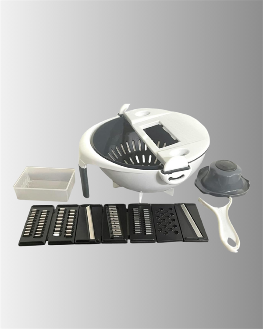 Mutfakta zamanı en verimli şekilde kullanmanızı sağlayacak bu 5 Fonksiyonlu Döner Süzgeçli Rende Doğrayıcı, sebze ve meyve hazırlama işlerinizi büyük ölçüde kolaylaştırır. 5 farklı bıçak sayesinde rendeleme, dilimleme ve şerit doğrama işlemlerini zahmetsizce yapabilirsiniz.Kullanımı son derece pratik olan bu ürünün döner haznesi ve süzgeçli alt kabı sayesinde hem hazırlık hem temizlik süresi kısalır. Rendelediğiniz yiyeceklerin alt haznede birikmesi sayesinde mutfağınız daha düzenli kalır, su tahliyesi kolaylıkla yapılır.