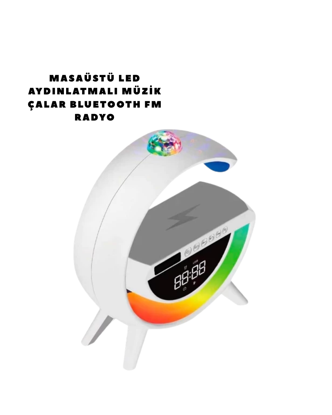 Kablosuz şarj özelliğiyle öne çıkan bu gelişmiş hoparlör, modern teknolojiyi kompakt bir gövdede birleştirerek çok amaçlı bir kullanım deneyimi sunar. Üzerindeki kablosuz şarj paneli sayesinde uyumlu telefonları hızlı şekilde şarj edebilir, kablo karmaşasını ortadan kaldırabilirsiniz. Bluetooth 5.0 bağlantısı ile tüm cihazlara uyumlu çalışır ve ses aktarımını gecikme olmadan gerçekleştirir.RGB LED ambiyans aydınlatması, cihazı yalnızca bir hoparlör olmaktan çıkarıp ortama renk ve atmosfer katan bir dekoratif ürüne dönüştürür. Farklı ışık modları sayesinde ister çalışma, ister dinlenme, ister eğlence ortamları için uygun bir atmosfer oluşturabilirsiniz. 7 doğal ses efekti özelliği, stres azaltma ve uykuya geçiş süreçlerinde kullanıcıya rahatlatıcı bir deneyim sunar.Dijital saat ekranı ve çalar saat fonksiyonu, cihazı başucu kullanımına uygun hale getirir. Gece lambası olarak da kullanılabildiği için yatak odası, çocuk odası veya çalışma masası için oldukça ideal bir üründür. Aux, USB ve TF kart girişi sayesinde müzik kaynakları çeşitlenir ve her ortamda dilediğiniz ses içeriğini oynatabilirsiniz.FM radyo özelliği güçlü sinyal çekimi ile öne çıkar. Şarj kablosunun anten görevi görmesi sayesinde radyo kanalları çok daha net bir şekilde alınır. 500 mAh bataryasıyla uzun süre kullanım sunan hoparlör, Type-C kablo ile hızlı şekilde şarj olur.Tüm bu özellikleriyle hoparlör; kablosuz şarj cihazı, dijital saat, FM radyo, RGB ışık ünitesi ve güçlü bir ses sistemi olarak görev yapar. Teknolojiyi estetikle buluşturan bu ürün, hem günlük kullanım hem hediye seçenekleri arasında mükemmel bir tercihtir.