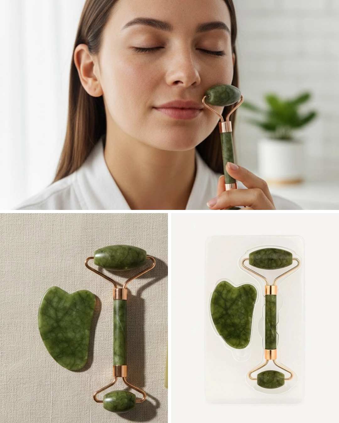 Doğal yeşim taşından üretilmiş 2 parçalı yüz masaj seti, cilt bakım rutininizi desteklemek ve daha canlı bir görünüm elde etmenize yardımcı olmak aıyla tasarlanmıştır. Set içerisinde çift başlıklı yeşim roller ve gua sha taşı bulunmaktadır. Doğal jade stone yapısı sayesinde cilt üzerinde serinletici ve rahatlatıcı bir his oluşturur.Çift başlıklı roller tasarımı sayesinde geniş ve dar alanlarda ayrı ayrı kullanım imkanı sunar. Büyük başlık alın, yanak ve boyun gibi geniş bölgelerde etkili masaj sağlarken küçük başlık hassas göz çevresi için idealdir. Gua sha taşı ise yüz kontürünü belirginleştirmek, çene hattını şekillendirmek ve lenf drenaj masajı yapmak için kullanılır.Düzenli kullanımda kan dolaşımını desteklemeye yardımcı olur. Göz altı şişkinliği görünümünü azaltabilir, cilt tonunun daha dengeli görünmesine katkı sağlar. İnce çizgilerin ve kırışıklıkların görünümünü azaltmaya destek olur.Serum veya yüz yağı uygulamasından sonra kullanıldığında bakım ürünlerinin emilimini destekleyebilir. Doğal taş yapısı ciltte ferah bir etki bırakır.Dayanıklı metal çerçeve ve sağlam yeşim taş gövde ile üretilmiştir. Günlük kullanım için uygundur ve uzun ömürlü performans sunar.