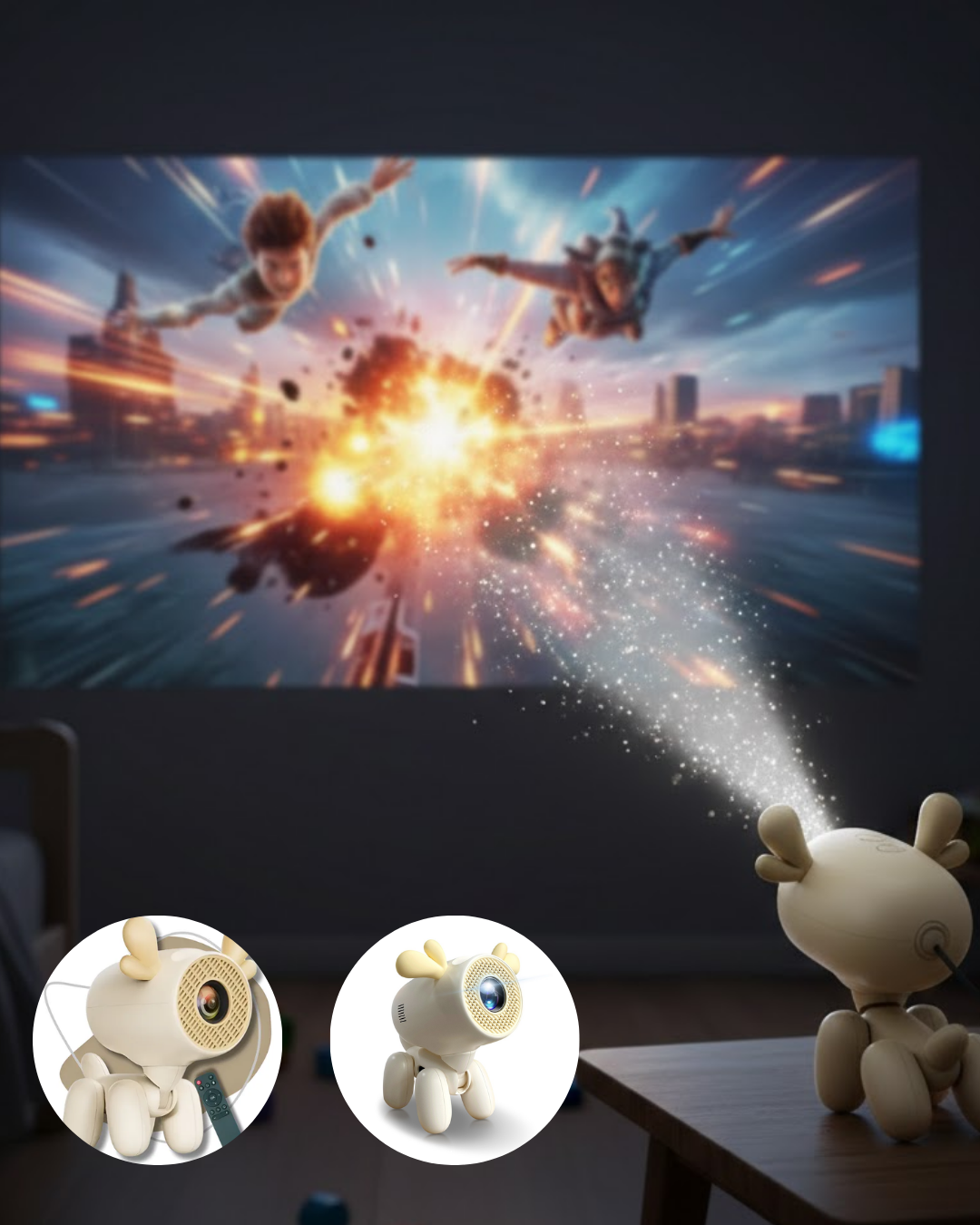 Döner başlıklı akıllı projeksiyon cihazı, yenilikçi tasarımı ve güçlü teknik altyapısı ile ev eğlence deneyimini ileri seviyeye taşır. Sevimli geyik formu sayesinde yalnızca bir projeksiyon cihazı değil, aynı zamanda dekoratif bir obje olarak da kullanılabilir. Kompakt gövde yapısı fazla yer kaplamaz ve entegre stand sistemi sayesinde ek aparat gerektirmeden dengeli şekilde konumlandırılabilir. 180° dönebilen başlık mekanizması, görüntüyü duvara, perdeye veya tavana yönlendirme özgürlüğü sunar. Bu özellik özellikle yatakta uzanarak tavana film izlemek isteyen kullanıcılar için büyük avantaj sağlar.4K içerik desteği sayesinde yüksek çözünürlüklü medya dosyalarını sorunsuz şekilde oynatabilir. 500 ANSI lümen parlaklık seviyesi, canlı renkler ve net detaylar sunarak yarı karanlık ortamlarda dahi tatmin edici görüntü performansı sağlar. Kontrast dengesi güçlüdür ve animasyon, film ya da sunum içeriklerinde keskinlik hissi verir. Ev sineması deneyimini kompakt bir cihazla yaşamak isteyen kullanıcılar için ideal bir çözümdür.Android tabanlı akıllı sistem sayesinde popüler dijital platformlara doğrudan erişim mümkündür. Ekstra medya oynatıcıya ihtiyaç duyulmaz. Dahili WiFi ile internet bağlantısı sağlanabilir, Bluetooth desteği ile harici hoparlör veya kulaklık bağlanabilir. HDMI, USB ve TF kart girişleri sayesinde bilgisayar, oyun konsolu veya harici depolama cihazlarıyla uyumlu çalışır.36W gücünde hoparlör sistemi ve Dolby Audio desteği, net ve oda dolduran ses performansı sunar. Ekstra ses sistemi gerektirmeden güçlü bir multimedya deneyimi sağlar.