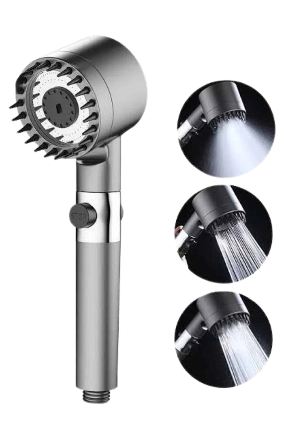 Krom kaplama malzemesiyle üretilmiş olan bu duş başlığı, hem es görünümüyle banyonuza şıklık katarken hem de uzun ömürlü ve dayanıklı bir kullanım sunar. Paslanmaya karşı dirençli yapısı sayesinde ilk günkü parlaklığını uzun süre korur ve günlük kullanımda yüksek performans sağlar. Üç farklı masaj modu sayesinde duş keyfinizi bambaşka bir seviyeye taşıyan bu ürün; rahatlatıcı, canlandırıcı ve derin doku masajı seçenekleriyle kişisel konforunuzu ön plana çıkarır. Günün stresini üzerinizden atmak veya güne zinde başlamak için ihtiyacınıza göre kolayca modlar arasında geçiş yapabilirsiniz.Kullanıcı dostu tasarımı sayesinde kurulumu oldukça basittir; ekstra bir ekipmana gerek kalmadan dakikalar içinde monte edilebilir. Ergonomik tutuşu ve su tasarrufu sağlayan yapısıyla hem çevre dostu hem de ekonomik bir kullanım sunar. Pratik kullanımı sayesinde her banyoya kolaylıkla entegre edilebilen bu duş başlığı, fonksiyonel ve şık bir banyo aksesuarı arayanlar için ideal bir seçimdir.