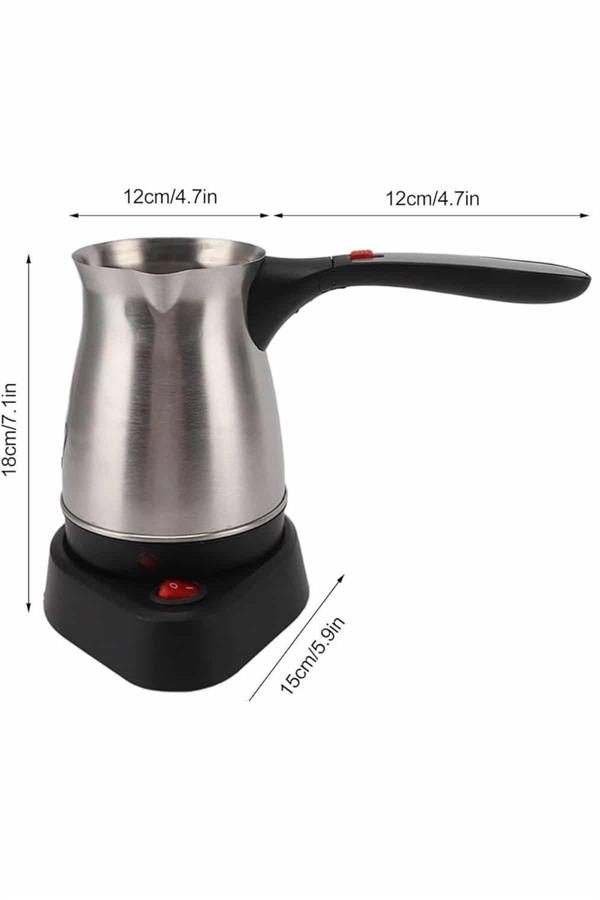 KESGİN MARKET® Yüksek performansı ve modern tasarımıyla dikkat çeken bu elektrikli cezve, 800 watt gücüyle mükemmel kahve deneyimi sunar. 300 ml kapasitesi ile 6 fincana kadar Türk kahvesi hazırlama imkânı tanır. Gizli rezistans teknolojisi, güvenli ve verimli bir şekilde kahvenizi pişirirken, aynı zamanda elektrikli cezvenin iç temizliğini de kolaylaştırır.Cezvenin 360 derece dönebilen kablosuz tabanı, pişirme sırasında rahatlık ve esneklik sağlar. Bu özellik, özellikle mutfakta hareket özgürlüğü arayan kullanıcılar için büyük bir avantajdır. Paslanmaz çelikten üretilmiş olan gövde, hem dayanıklı hem de şık bir görünüm sunar. Kolayca temizlenebilen tasarımı, hijyenik bir kullanım sunarak uzun süreli, sağlıklı kahve hazırlamanıza olanak tanır.Üzerinde bulunan kırmızı güç düğmesi sayesinde, cezve açılıp kapanabilir ve kullanım kolaylığı sağlar. Isınmayan, ergonomik kulpu ise kullanım sırasında pratiklik ve güvenlik sağlar. Paslanmaz çelik yapısı, cihazın uzun ömürlü olmasını sağlar, böylece yıllarca rahatlıkla kullanabilirsiniz.Bu elektrikli cezve, lezzetli Türk kahveleri hazırlamak isteyen kahveseverler için mükemmel bir seçimdir. Hem şık tasarımı hem de pratik özellikleriyle, mutfağınıza modern bir dokunuş katacaktır.