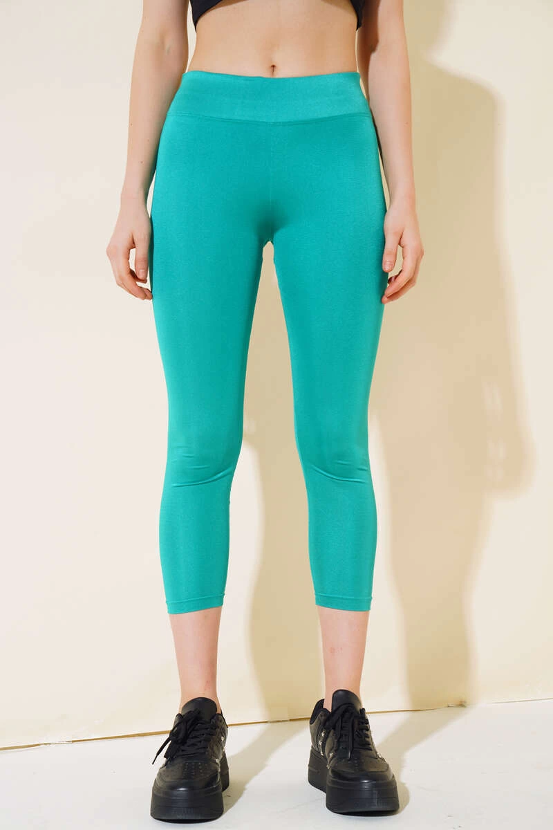 Esnek Yüksek Bel Yeşil Uzun Parlak Disco Tayt