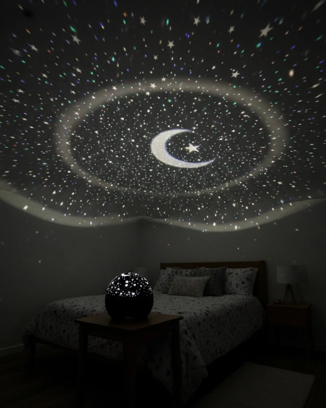 Fişli yıldız projektör lamba, bulunduğu ortama huzurlu ve etkileyici bir atmosfer kazandırmak için tasarlanmış dekoratif bir gece lambasıdır. Elektrik prizine takılarak çalışan yapısı sayesinde kesintisiz ve stabil bir kullanım sunar. Batarya veya şarj derdi olmadan uzun süreli kullanım imkânı sağlar ve özellikle gece boyunca ışığın sürekli açık kalması gereken alanlar için idealdir.Yıldız yansıtma özelliği sayesinde tavan ve duvarlara gökyüzü efekti yansıtır. Ortamın ambiyansına göre ayarlanabilen parlaklık ve yansıtma hızı, kullanıcıya kişisel bir deneyim sunar. Yumuşak ışık geçişleri, göz yormayan bir aydınlatma sağlar ve dinlendirici bir ortam oluşturur.Dahili müzik hoparlörü ile dikkat çeken bu yıldız projektör, USB bellek aracılığıyla müzik veya uyku sesleri çalmanıza olanak tanır. Sesle tepki veren modda ışıklar, müziğin ritmine göre hareket eder ve desen değiştirir. Bu özellik hem çocuklar hem de yetişkinler için keyifli bir deneyim sunar.30 dakikalık zamanlayıcı fonksiyonu, özellikle gece kullanımında büyük kolaylık sağlar. Önceden ayarlanan sürenin sonunda lamba otomatik olarak kapanır. Bu sayede enerji tasarrufu sağlanır ve kullanıcıya konfor sunulur.Çocuk odaları, yatak odaları, salonlar, partiler ve özel günler için ideal bir dekoratif aydınlatma çözümüdür. Hem görsel hem işitsel özellikleriyle ortamın havasını tamamen değiştirir.
