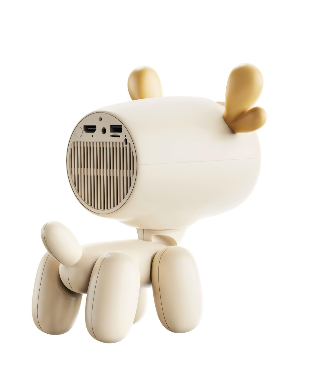 Geyik tasarımlı akıllı projeksiyon cihazı, estetik görünümü ve güçlü teknik özellikleri bir araya getiren modern bir ev eğlence çözümüdür. Sevimli ve kompakt form faktörü sayesinde çocuk odasından salona kadar her ortama uyum sağlar. Döner başlık tasarımı ve entegre stand yapısı sayesinde farklı açılarda konumlandırma imkanı sunar. Bu özellik, projeksiyonu duvara veya tavana kolayca yönlendirmeyi mümkün kılar.4K içerik desteği sayesinde yüksek çözünürlüklü medya dosyalarını sorunsuz şekilde oynatabilir. 500 ANSI lümen parlaklık değeri, net ve canlı görüntü performansı sunar. Bu sayede hem karanlık hem de yarı loş ortamlarda tatmin edici bir görüntü kalitesi elde edilir. Renkler canlı, detaylar keskin ve kontrast seviyesi dengelidir. Film, animasyon ve dizi içeriklerinde sürükleyici bir deneyim sağlar.Android tabanlı akıllı sistem sayesinde Netflix, YouTube ve benzeri popüler uygulamalara doğrudan erişim mümkündür. Harici bir medya oynatıcıya ihtiyaç duymadan internet üzerinden içerik izleyebilirsiniz. Dahili WiFi ve Bluetooth bağlantı özellikleri kablosuz kullanım kolaylığı sağlar. Ayrıca HDMI, USB ve TF kart girişleri ile geniş bağlantı seçenekleri sunar.36W gücünde dahili hoparlör sistemi ve Dolby Audio desteği sayesinde güçlü, temiz ve oda dolduran ses performansı sunar. Ekstra hoparlör ihtiyacı olmadan film ve müzik keyfi yaşatır.