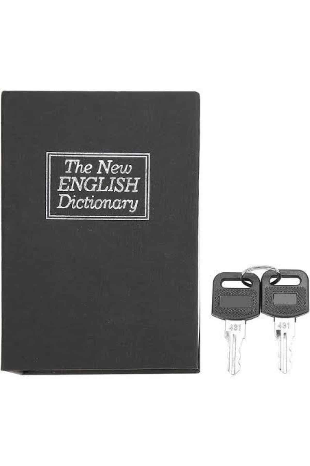KESGİN MARKET® Kitaplıkta sıradan bir sözlük gibi görünen ancak içerisinde yüksek güvenlik sunan bu lacivert renkli Sözlük Görünümlü Kitap Kasa, değerli eşyalarınızı gizli ve güvenli bir şekilde saklamanızı sağlar. İngilizce sözlük tasarımı sayesinde gerçek bir kitaptan ayırt edilmesi neredeyse imkânsız olan bu ürün, özellikle davetsiz misafirlerin en son bakacağı yer olan kitaplık gibi alanlarda ideal bir kamuflaj sunar. Kitabın kapağı karton cilt yapısıyla orijinal kitap görünümüne sahipken, iç kısmında yer alan metal kasa 1 mm kalınlığında sağlam yapısıyla koruma sağlar. Bu detay, hem gizlilik hem de fiziksel güvenlik açısından kullanıcıya maksimum fayda sunar.Ürünle birlikte gelen iki adet anahtar sayesinde yalnızca siz erişim sağlayabilir, başka bir anahtarla açılması mümkün olmayan benzersiz kilit sistemi ile ekstra güvenlik elde edersiniz. Her kitap kasa kendi özel kilit mekanizmasına sahip olduğu için, anahtarlar birbirinin yerine geçmez. Böylece ofisinizde ya da evinizde birden fazla kitap kasa bulundursanız bile güvenlik riski oluşmaz. Takılarınızı, yedek anahtarlarınızı, nakit paralarınızı, dijital depolama aygıtlarınızı veya önemli belgelerinizi bu gizli kasaya gönül rahatlığıyla koyabilirsiniz.Kompakt yapısı sayesinde her yere kolaylıkla yerleştirilebilen bu ürün 18 cm uzunluğa, 11.5 cm genişliğe ve 5.5 cm derinliğe sahiptir. Bu ölçüler, hem taşınabilirlik açısından avantaj sunar hem de içerisine birçok farklı türde değerli eşya sığdırmanıza olanak tanır. Ofiste masa üzerinde veya kitaplıkta, evde ise oturma odasında ya da yatak odasında kullanılabilir. Ürün, pratikliği ve fonksiyonelliği ile hem bireysel kullanıcılar hem de hediye arayışında olanlar için mükemmel bir tercihtir. Dışarıdan tamamen kitap gibi görünen bu güvenli kasa ile değerli eşyalarınızı korumak artık çok daha estetik, akıllıca ve huzurlu.