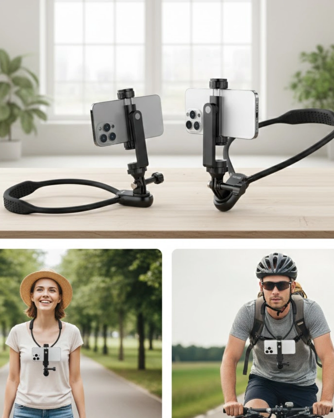Eller serbest çekim deneyimi sunan bu boyun askılı telefon tutucu, günlük kullanım için tasarlanmıştır. Kolay bükülebilir silikon yapısı ile konforlu oturum sağlar.Sağlam telefon kelepçesi, cihazınızı güvenli şekilde sabitler. Hızlı kurulum anahtarı sayesinde boyun bandının bir tarafı pratik biçimde çıkarılabilir.Koşu, bisiklet, seyahat ve içerik üretimi için ideal çözüm sunar.