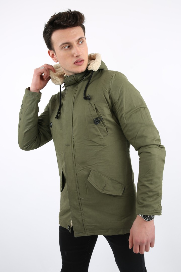 · İçi kürklü çıkmalı kapşonlu kalın erkek günlük mont soğuk havalar için idealdir;