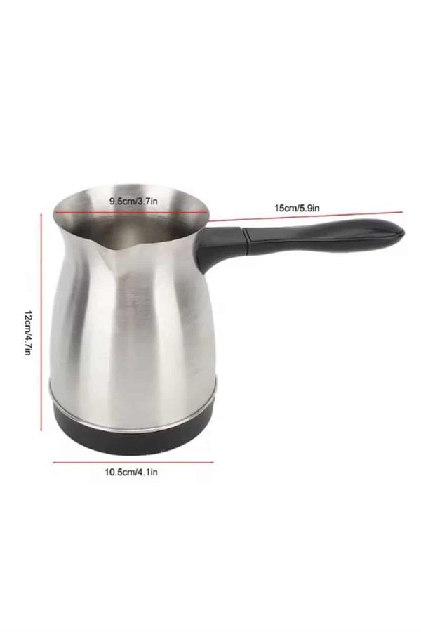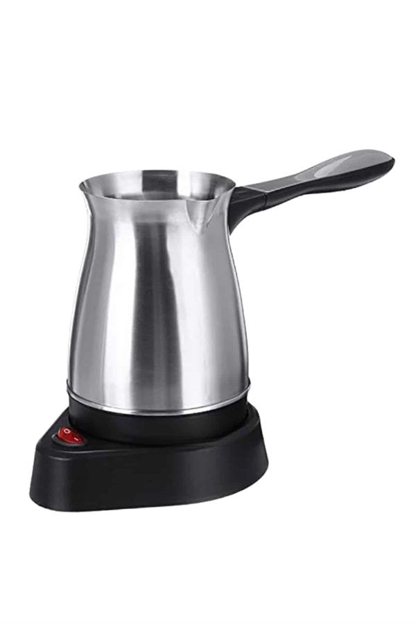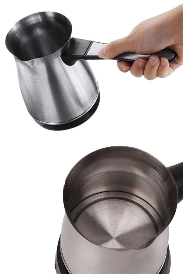 KESGİN MARKET® Bu elektrikli cezve, 800 watt gücüyle yüksek performans sağlar ve mükemmel Türk kahvesi deneyimi sunar. 360 ml kapasitesi ile 6 fincana kadar kahve hazırlayabilirsiniz, böylece kalabalık misafirlerinize veya büyük aile yemeklerinde kolayca kahve ikram edebilirsiniz. Gizli rezistans teknolojisi, hızlı ısınma ve güvenli kullanım sağlar, ayrıca temizlik açısından da büyük kolaylık sunar.360 derece dönebilen kablosuz tabanı, rahat bir kullanım sağlar ve her açıdan kolayca hareket etmenize olanak tanır. Paslanmaz çelik gövdesi, hem dayanıklı hem de estetik açıdan şık bir görünüm sunar. Kolayca temizlenebilen tasarımı, hijyenik bir kullanım imkanı tanır ve her seferinde taze kahve hazırlamanızı sağlar.Cezvenin üzerinde bulunan kırmızı güç düğmesi ile açma ve kapama işlemleri son derece basittir. Isınmayan ergonomik kulpu ise güvenli ve rahat bir tutuş sağlar. Paslanmaz çelik yapısı, uzun ömürlü kullanım ve şık bir tasarım sunarak mutfağınıza zarif bir dokunuş katar.Bu elektrikli cezve, Türk kahvesi sevenler için mükemmel bir seçimdir. Hem işlevsel hem de estetik özellikleriyle kahve hazırlama deneyiminizi daha pratik ve keyifli hale getirir. 6 fincana kadar kapasitesiyle geniş aileler ve misafirler için ideal bir yardımcıdır.