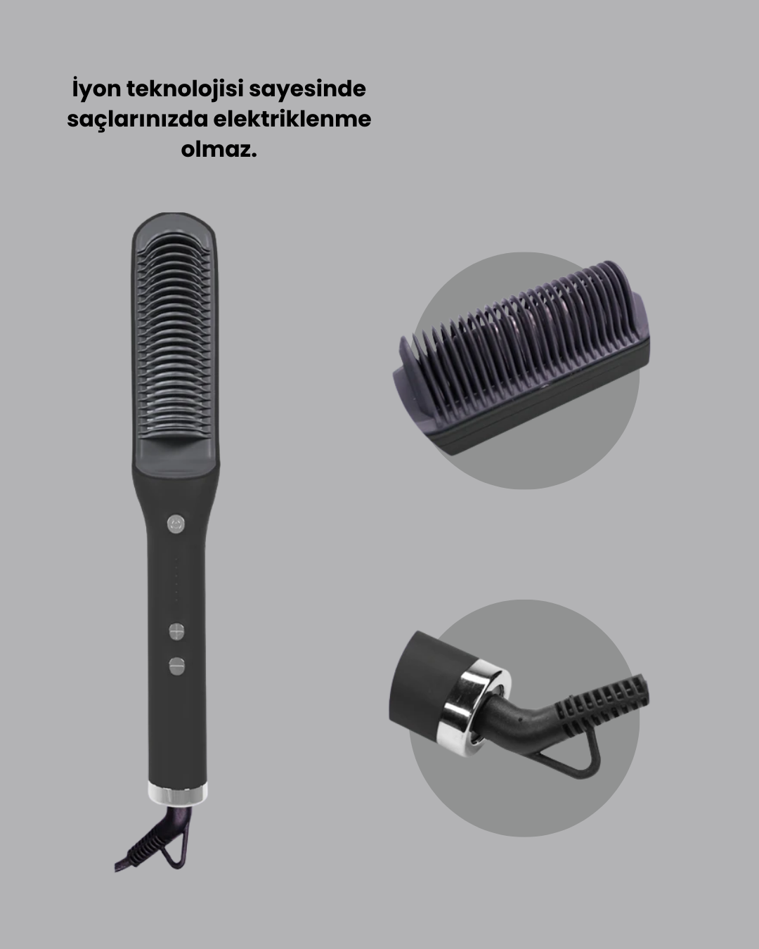 Isı ayarlı saç düzleştirici tarak, 130 dereceden 200 dereceye kadar ayarlanabilen sıcaklık seçenekleriyle farklı saç tiplerine uyum sağlar. İnce telli ve boyanmış saçlar için düşük sıcaklık, kalın ve kıvırcık saçlar için yüksek sıcaklık ayarlarıyla etkili sonuçlar elde edebilirsiniz. Saçınızı kökten uca tarayarak kolayca düzleştirmenize yardımcı olur. Saça zarar vermeden şekillendirme yapmak isteyenler için ideal bir saç bakım ürünüdür.