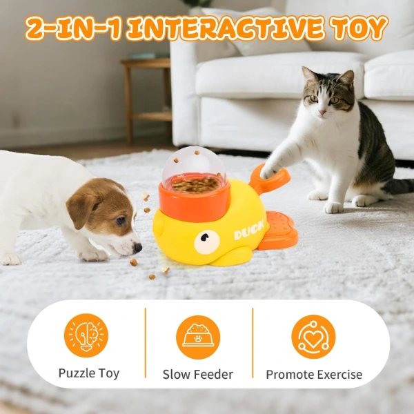 İNTERAKTİF EVCİL HAYVAN ÖDÜL MAMASI OYUNCAĞIÜrün Özellikleriİnteraktif evcil hayvan ödül maması oyuncağı, kedi ve köpeklerin zihinsel gelişimini desteklerken aynı zamanda eğlenceli bir oyun deneyimi sunar. Ödül maması haznesi, hayvanınızın oyuncağı hareket ettirmesiyle mamaların yavaş yavaş çıkmasını sağlar ve bu sayede hem eğlenir hem de yavaş beslenir. Dayanıklı, toksik madde içermeyen ABS plastik malzeme ile üretilmiştir. Kaymaz alt tabanı sayesinde yüzeyde sabit durur ve çevreye zarar vermez. Hem egzersiz hem zeka geliştirme amacıyla kullanılabilir. Ördek şeklindeki sevimli tasarımıyla dikkat çeker ve hayvan dostlarınızın ilgisini çeker. Kedi ve küçük ırk köpekler için uygundur, mama ödülleriyle oynarken aktif kalmalarına yardımcı olur.Paket İçeriği1 adet interaktif evcil hayvan ödül maması oyuncağı