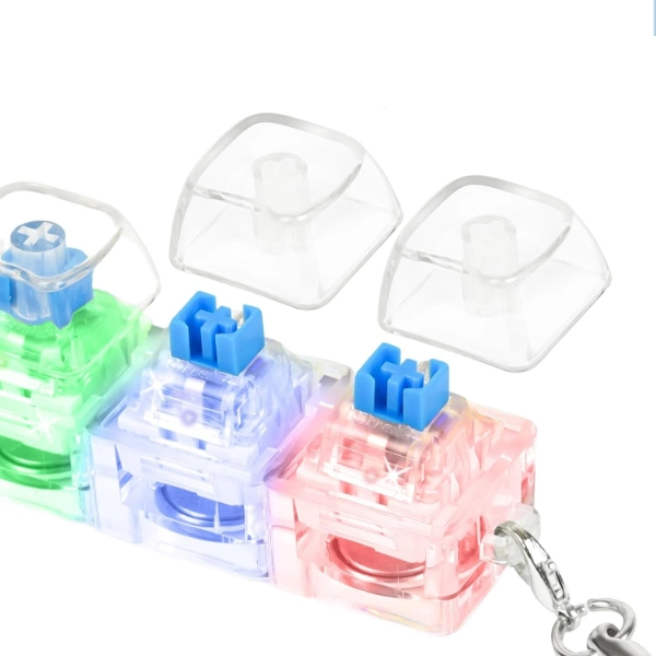 IŞIKLI KLAVYE TUŞU SWİTCH ANAHTARLIKÜrün ÖzellikleriIşıklı Klavye Tuşu Switch Anahtarlık, mekanik klavye tuş hissini mini boyutta sunan eğlenceli ve dikkat çekici bir aksesuardır. Basıldığında ışık efekti veren tasarımı sayesinde hem görsel hem de dokunsal bir deneyim sunar. Mini formdaki switch tuş mekanizması sayesinde tıklama hissi verir ve gün içinde elde oynanabilen bir fidget stres oyuncağı anahtarlık olarak kullanılabilir. Şeffaf gövde yapısı ile iç mekanizma detayları görülebilir ve ışıklı tasarımı ile karanlık ortamlarda dikkat çekici bir görünüm sağlar. Anahtarlık halkası sayesinde çanta, anahtar veya aksesuar olarak rahatlıkla taşınabilir. Ürün renklerde gönderilir; renk tercihi yapılamaz.Ürün Teknik Özellikleri Özellik Açıklama Ürün Adı Işıklı Klavye Tuşu Switch Anahtarlık Tasarım Mekanik klavye tuşu formu Özellik Basınca duyarlı ışık efekti Kullanım Fidget stres oyuncağı ve anahtarlık Renk renklerde gönderilir Paket İçeriği1 adet Işıklı Klavye Tuşu Switch Anahtarlık