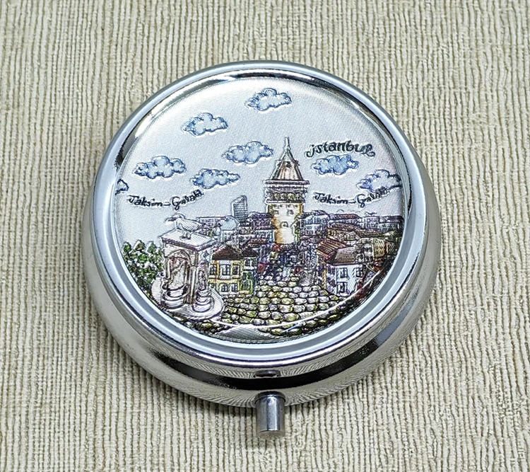 İSTANBUL TEMALI İLAÇ KUTUSU MODEL 6Ürün Özellikleriİstanbul temalı ilaç kutusu, klasik ve zarif tasarımıyla günlük kullanımda hem pratik hem de estetik bir çözüm sunar. Üzerinde yer alan İstanbul manzarası ile koleksiyonluk ve hediyelik eşya olarak da tercih edilebilen bu ürün, kompakt yapısı sayesinde çanta içinde rahatlıkla taşınabilir. İç kısmında bulunan üç bölmeli ilaç kutusu tasarımı, farklı ilaçların düzenli ve karışmadan saklanmasına yardımcı olur. Günlük kullanım ve seyahatler için ideal olan taşınabilir ilaç saklama kutusu, dayanıklı gövdesi ve kapaklı yapısıyla ilaçların güvenli şekilde muhafaza edilmesini sağlar. Fonksiyonel yapısı ve şık görünümüyle öne çıkan bölmeli ilaç kutusu, düzenli kullanım avantajı sunar.Ürün Teknik Özellikleri Özellik Açıklama Ürün Adı İstanbul Temalı İlaç Kutusu Model 6 Ölçü Yaklaşık 5 x 5 cm Bölme Sayısı 3 bölmeli Tasarım İstanbul temalı kapak Kullanım Alanı Günlük kullanım, seyahat, çanta içi Paket İçeriği1 adet İstanbul Temalı İlaç Kutusu - Model 6