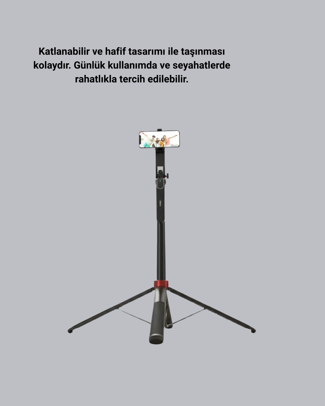 Bu set, profesyonel ses ve stabil görüntü arayan içerik üreticileri için özel olarak bir araya getirilmiştir. Çift mikrofonlu kablosuz yaka mikrofonu sistemi, iki konuşının bulunduğu çekimlerde dahi net ve dengeli ses kaydı alınmasını sağlar. iPhone cihazlarla tam uyumlu yapısı sayesinde alıcıyı Lightning girişine takmanız yeterlidir; mikrofonlar otomatik olarak bağlanır ve saniyeler içinde kullanıma hazır hâle gelir.360 derece ses alma teknolojisi ve gelişmiş gürültü azaltma sistemi sayesinde rüzgâr, ortam uğultusu ve arka plan sesleri filtrelenerek temiz ve berrak bir ses elde edilir. Tripodlu selfie çubuğu ise uzatılabilir gövdesi ve tripod ayakları sayesinde titreşimsiz ve stabil çekimler sunar. Uzaktan kumanda desteği ile fotoğraf ve video çekimleri daha pratik hale gelir.