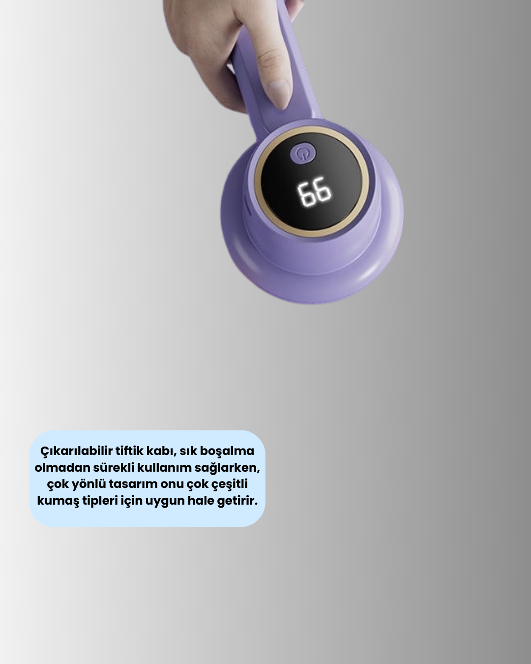 Kablosuz tüy alma makinesi, kumaş bakımını zahmetsiz hale getirmek isteyen kullanıcılar için geliştirilmiştir. Çıkarılabilir tiftik haznesi, uzun süreli kullanımda pratiklik sunar. Geniş kapsama alanı sayesinde tek seferde daha fazla kumaş temizlenebilir.Şarjlı pil sistemi, hareket özgürlüğü sağlayarak cihazın her ortamda rahatça kullanılmasına olanak tanır. Dayanıklı ABS malzeme, uzun ömürlü kullanım için idealdir. Giysilerden ev tekstiline kadar geniş bir kullanım alanı sunar.