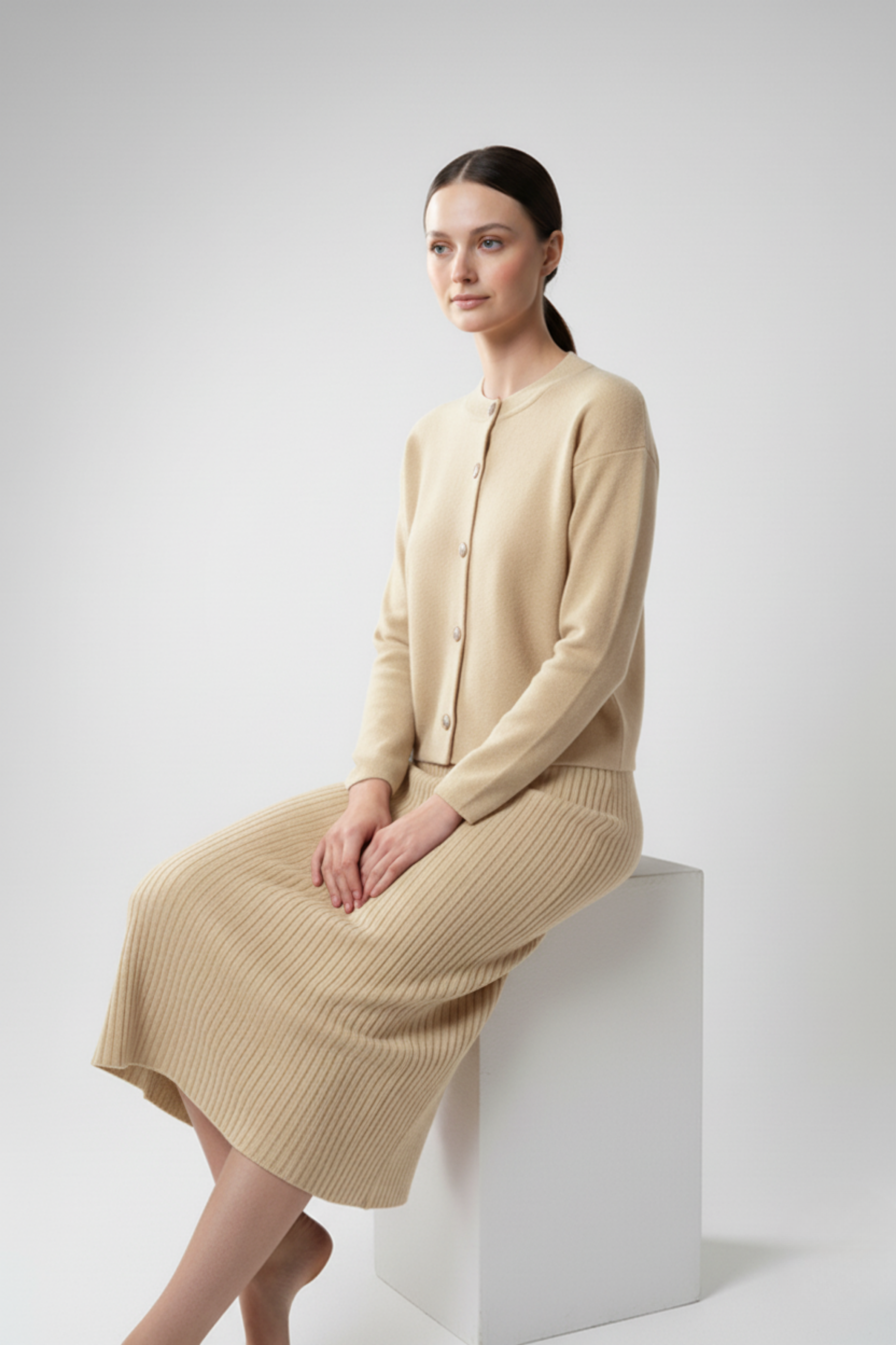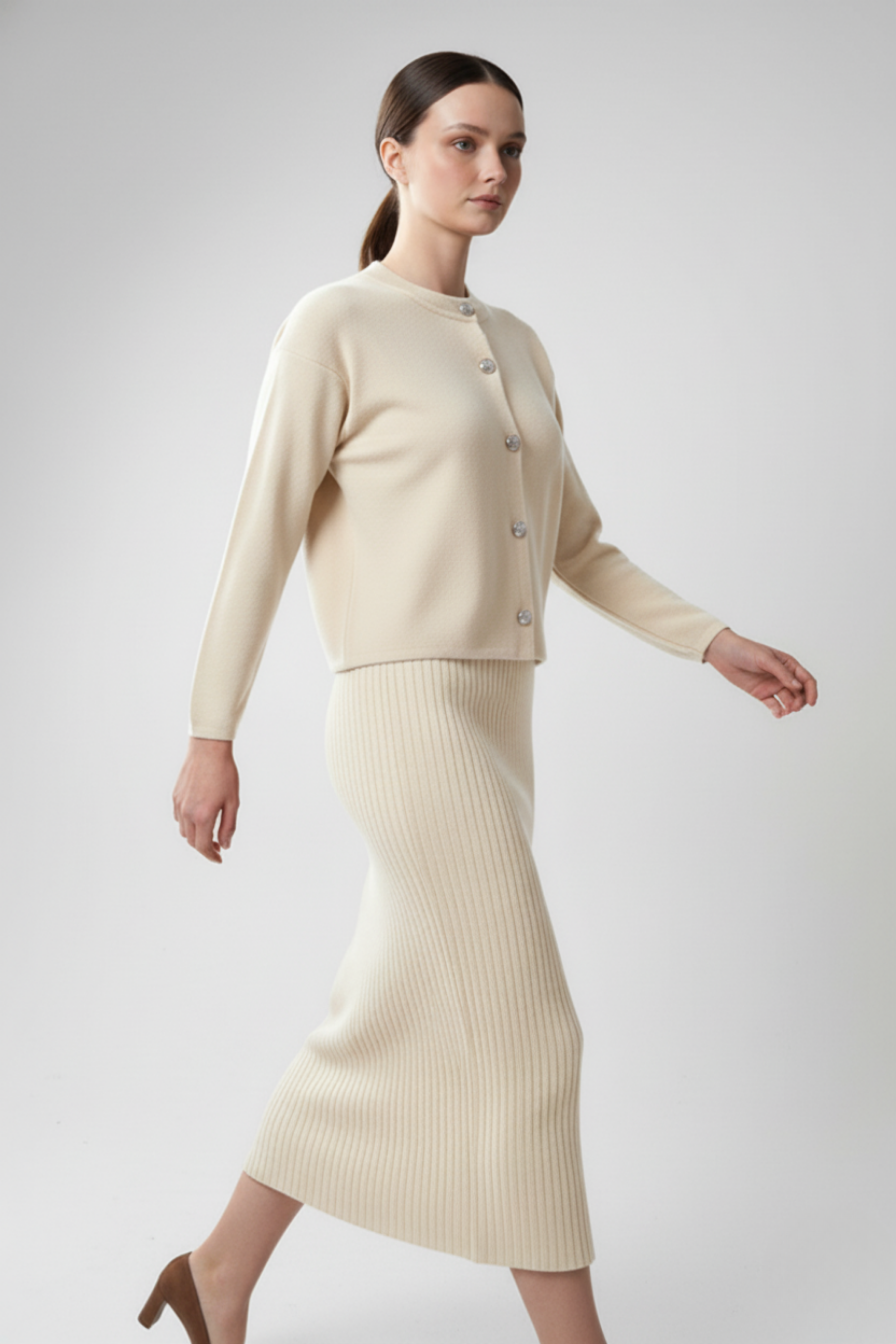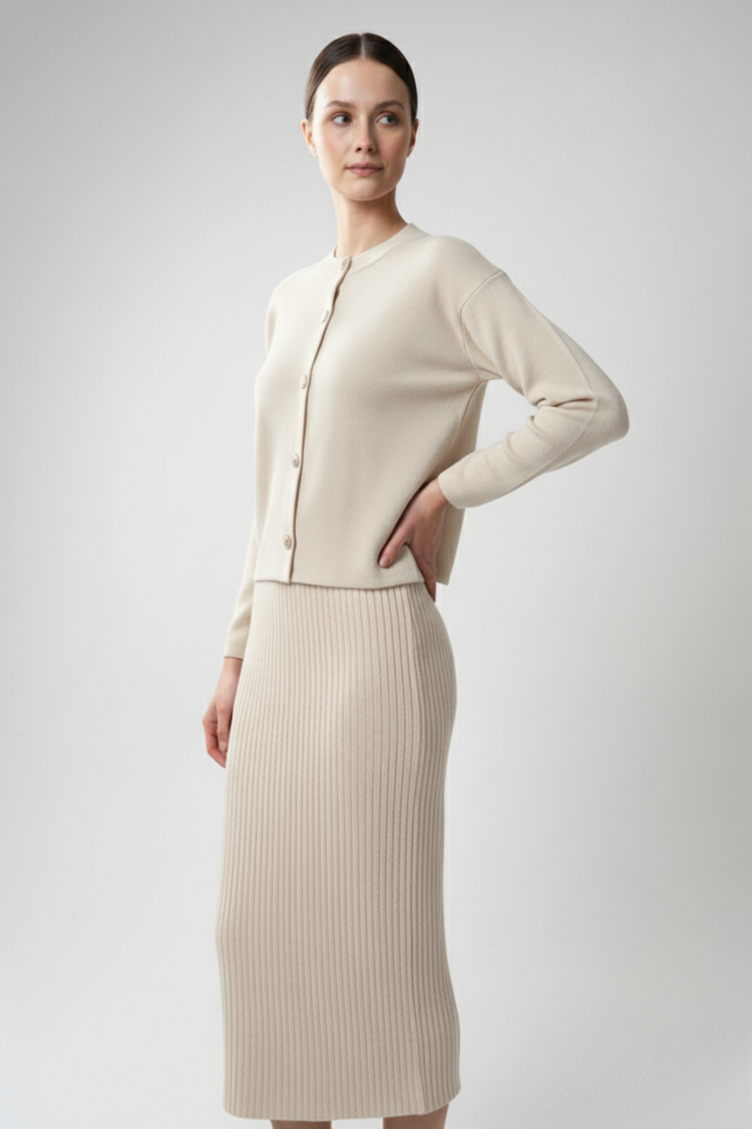 Kadın Hırka Elbise İkili Takım - Krem, sade zarafetiyle her dönemin favorisi olmaya aday! Krem rengin soft ve zarif tonları, doğal bir ışıltı kazandırırken, triko dokusu yumuşacık bir konfor sunar. Uzun hırka ve uyumlu elbise tasarımı, zarif bir bütünlük oluşturarak hem günlük hem de özel anlarda kusursuz bir görünüm sağlar. Minimal çizgileriyle öne çıkan bu takım, sade ama etkileyici şıklığın en güzel hali!