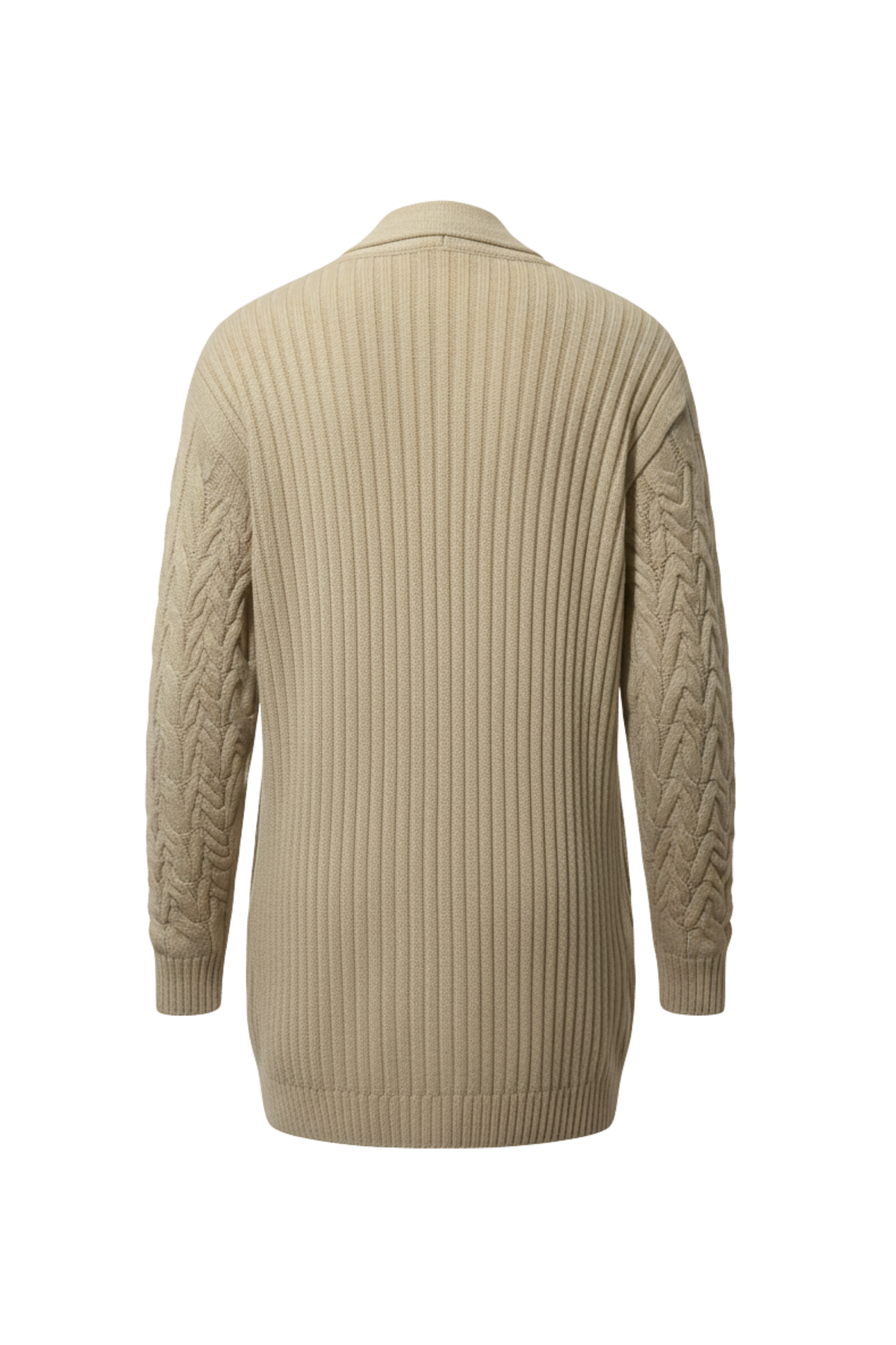 Kadın krem uzun oversize örgü hırka, soft rengi ve kabartmalı chevron (zikzak) örgü detayıyla zarif ve modern bir görünüm sunar. Yumuşak dokulu triko yapısı sayesinde sıcak tutar ve konforlu bir kullanım sağlar. Doğal tonlara sahip zamansız tasarımı ile hem sade hem de şık kombinlerin anahtar parçasıdır.