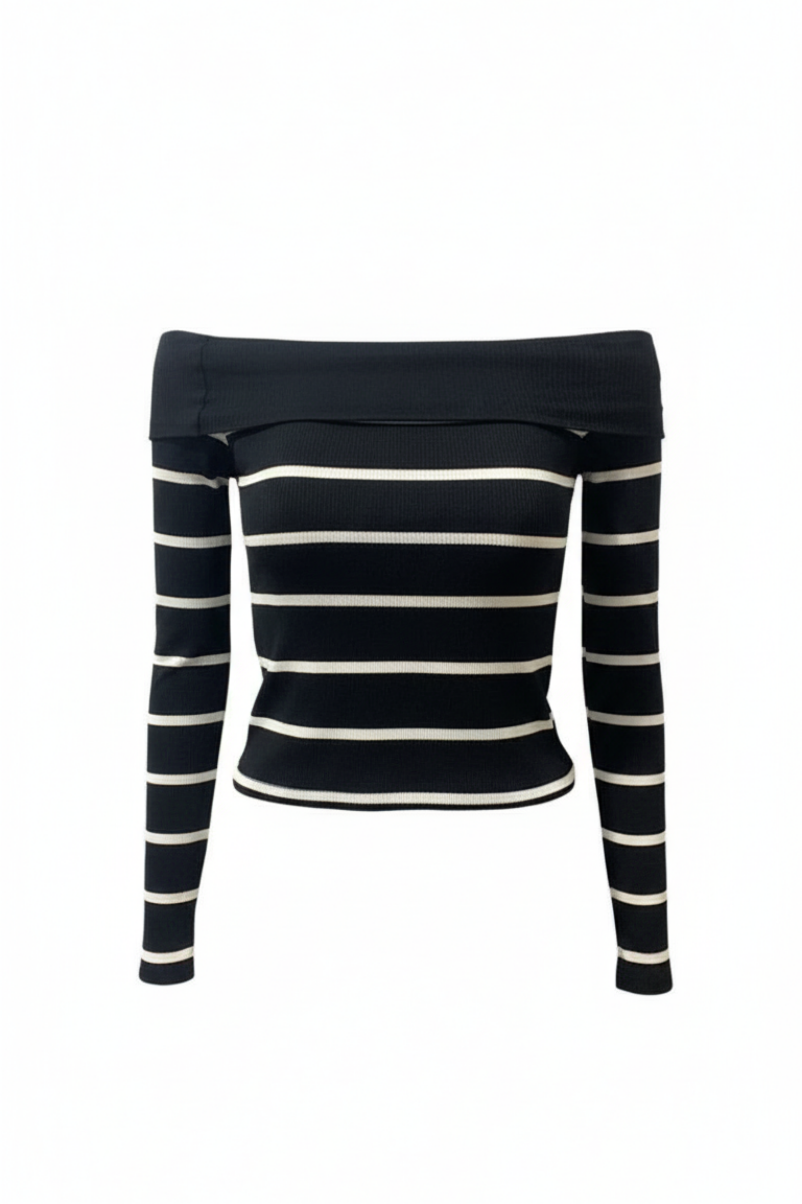 Kadın Siyah - Beyaz Çizgili Madonna Yaka Bluz