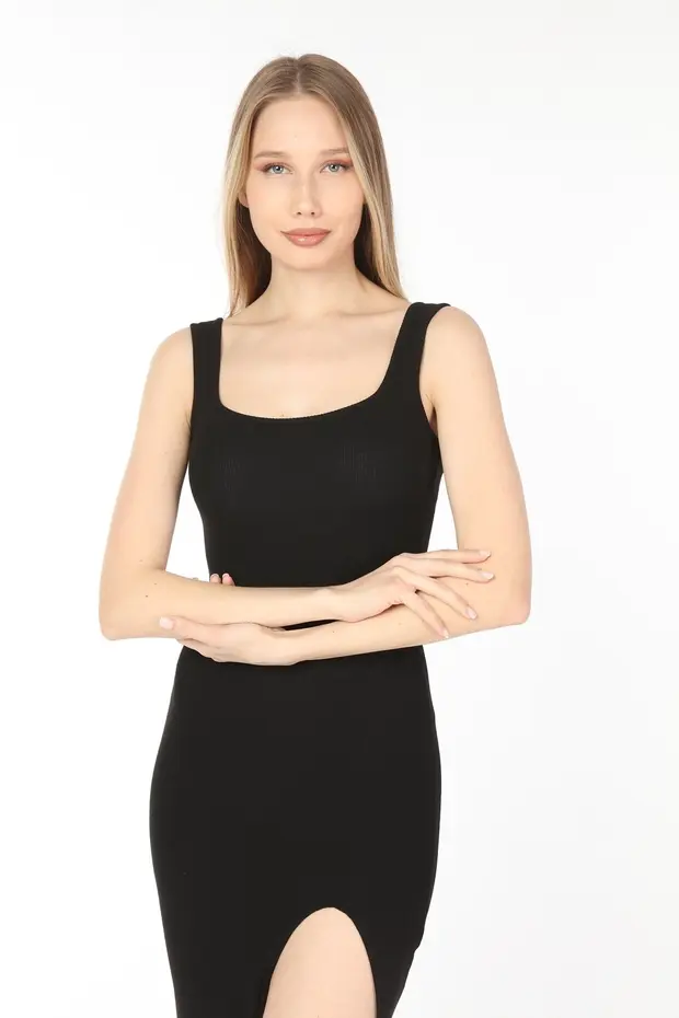 Şıklık ve konforu aynı tasarımda buluşturan bu kare yaka yırtmaçlı midi elbise, stil sahibi kadınların gardırobunda vazgeçilmez bir parça olmaya aday. Poliviskon kumaşı ve kaşkorse dokuma yapısı, gün boyu nefes alabilen, esnek ve konforlu bir kullanım sunar.