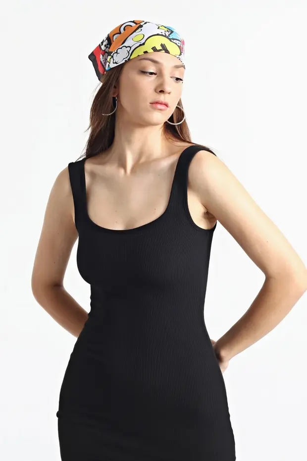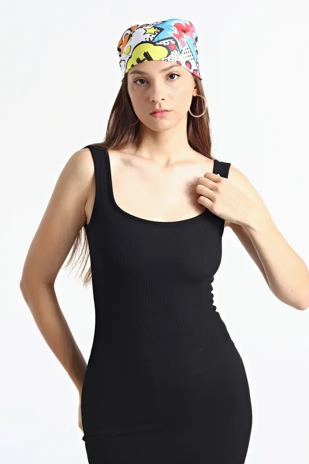 Kare yaka tasarımı, modern ve trend bir duruş kazandırarak boyun hattını zarifçe öne çıkarır. Dayanıklı, nefes alabilen dokuma kumaş yapısı uzun ömürlü kullanım sağlarken, desenli yüzeyi ile stilinizi göz alıcı hale getirir.
