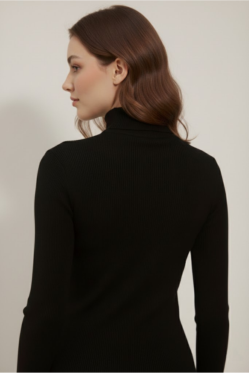 Siyah Beyaz Zebra Desenli Yarım Balıkçı Yaka Bluz